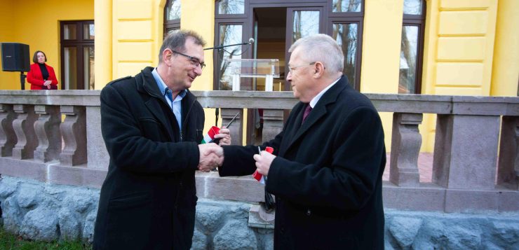 Számomra egy épület akkor jó, ha él. Ha a jövő nemzedékét, a gyerekeket, az ifjakat itt össze tudjuk hozni, amikor a művészek összegyűlnek, amikor az alkotás szelleme betölti az épületet” – mondta köszöntőjében Szabó Zsolt, emlékezve a Mesterre is: – Amikor elkezdtük ezt a beruházást, nem gondoltam volna, hogy ő már nem éri meg és nem együtt vágjuk majd a piros-fehér-zöld szalagot. Abban azonban biztos vagyok, hogy mind a belső tartalmi elemeket, mind a külső környezetet és bennünket kritikus szemmel óvva, vigyázva, a mai napig itt van velünk.