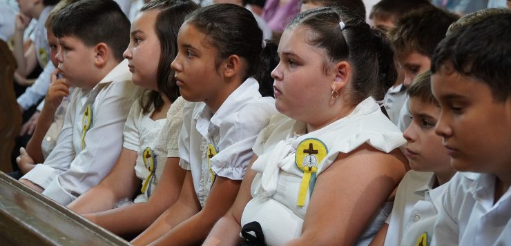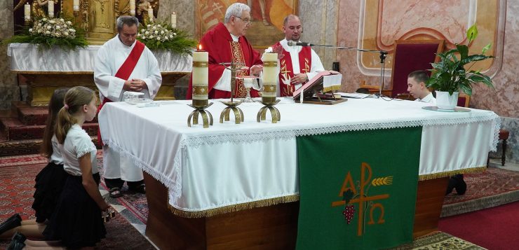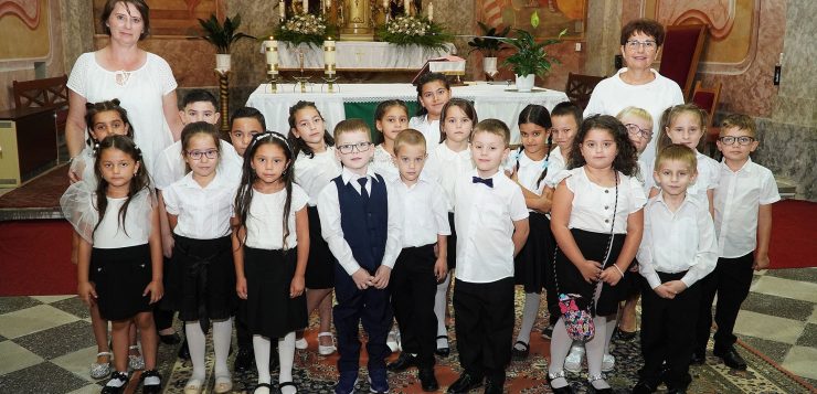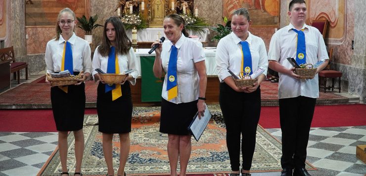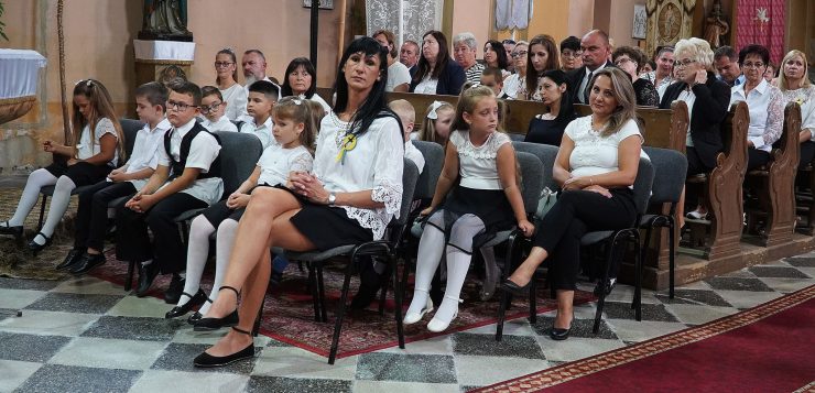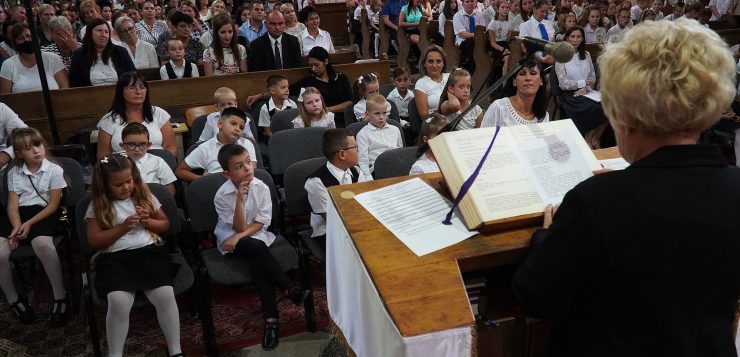 A szentmise után színvonalas műsor keretében, versekkel és énekekkel köszöntötték az új tanévet a diákok.