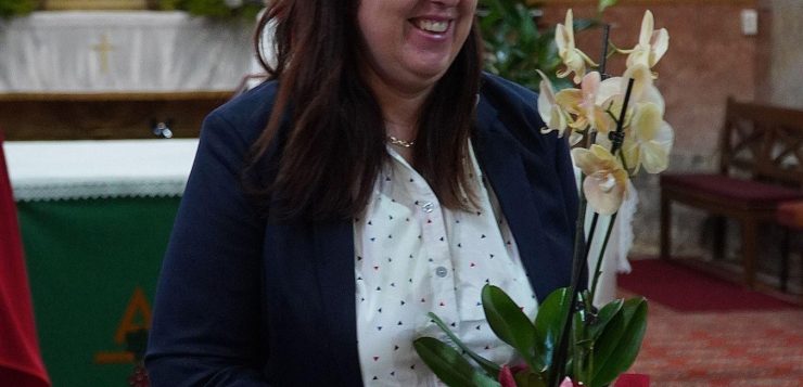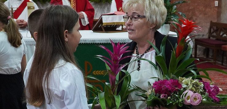 Ezt követően István atya az iskola közössége nevében gratulált és elismerését fejezte ki Bódor Istvánné intézményvezetőnek, aki „Heves Város Közszolgálatáért” kitüntető díjban részesült az Államalapítás ünnepén, majd köszöntötte Tóth Ferencnét, az iskola SZMK elnökét, aki szintén elismerésben részesült.