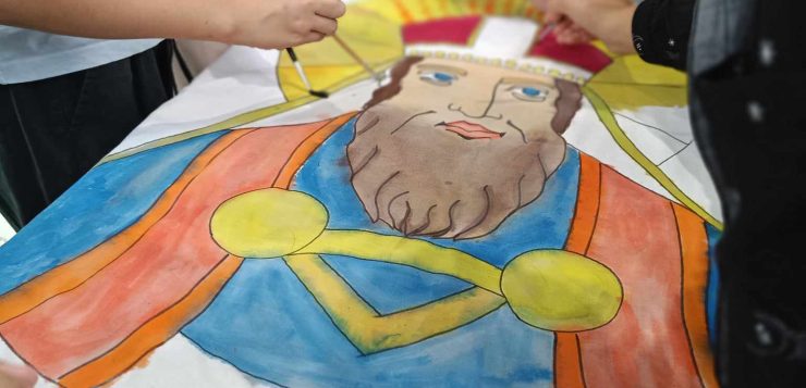 A színvonalas és megható előadás után Halassy Csilla szobrászművész foglalkozásán bontakoztathatták ki kreativitásukat a gyerekek. A különböző iskolákból érkezett tanulók vegyes csoportokban készítették el Szent Gellért vászonképét, amit a találkozó végén