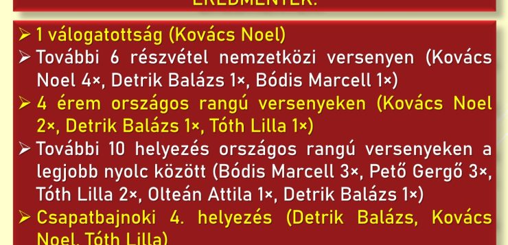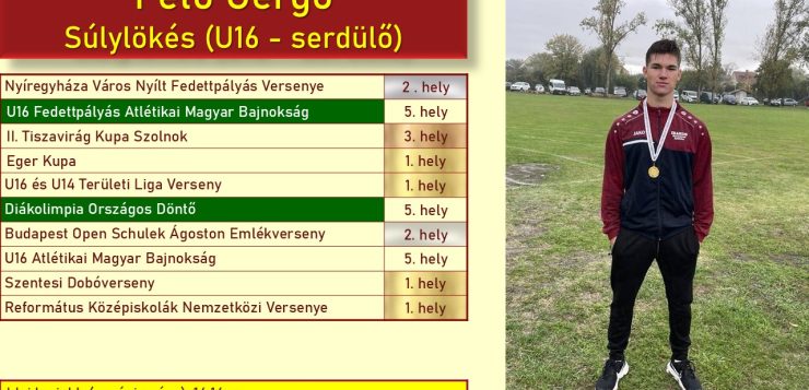 Pető Gergő nagyszerűen szerepelt ebben az évben, főként, ha figyelembe vesszük, hogy ez az első éve, amikor versenyzett. Külön örvendetes, hogy az országos bajnokságon és a diákolimpián is ott volt a legjobb nyolc között. Emellett több versenyen is dobogóra tudott állni. Az egyéni csúcsát úgyszintén több alkalommal is megjavította (sajnos a református verseny ebből a szempontból nem játszik szerepet, mert nem MASZ rendezvény.) A következő évben már ifjúsági (U18) korosztályú versenyző lesz.
