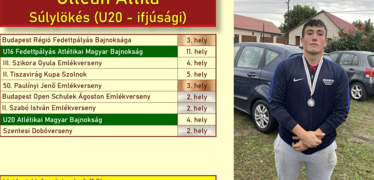 Jól sikerült az év Olteán Attila számára is, aki az év folyamán nem kevesebb, mint nyolc alkalommal javította meg az egyéni rekordját. Az pedig külön örvendetes, hogy nyáron az előkelő, negyedik helyen végzett az országos bajnokságon. Jövőre még ugyanebben a korosztályban fog szerepelni, így reális az esélye annak, hogy sikerül tovább javítani az egyéni legjobb eredményét és még előkelőbb pozícióba végezni a különböző versenyeken.