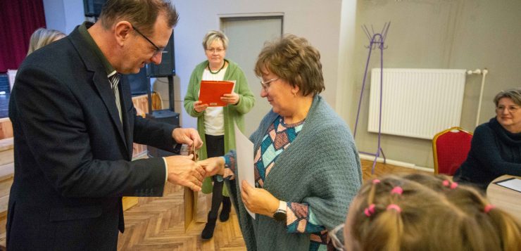 Balogh Margó intézményvezető gondolatait Kóczián Judit művelődésszervező tolmácsolta. „Az együttes mesemondó verseny is bizonyítja azt, hogy van egy kivételesen erős, semmi máshoz nem hasonlítható kötelék, amely csak a nagyszülők és unokáik között létezik.