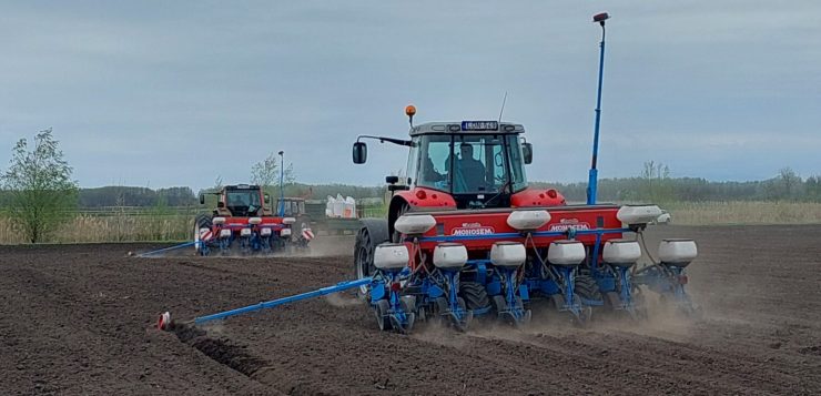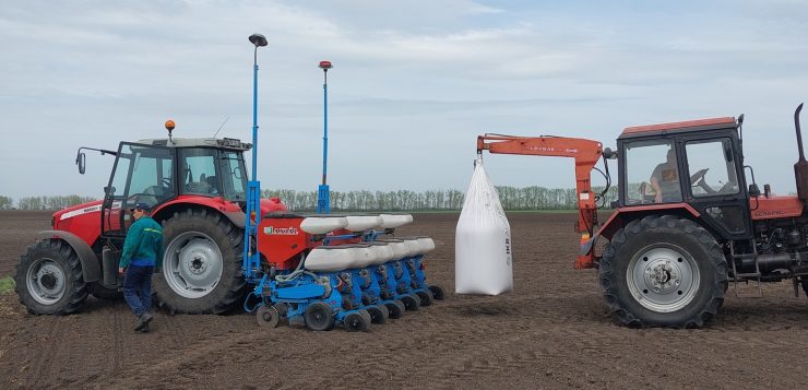 Az elmúlt napokban a gabonatáblákon végeztek kulcsfontosságú feladatokat: a búza lombtrágyázása történt meg. Ezzel párhuzamosan a napraforgó vetése is befejeződött, melyet azonnal gyomirtó szerrel kezeltek a későbbi gyomosodás megelőzése érdekében.