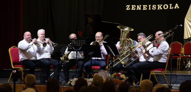 A díszünnepséget a Rézfúvós kamaraegyüttes nyitotta meg, ezt követően Nagyné Gulyás Katalin tagintézmény-igazgató üdvözölte a jelenlévőket, majd – egy egykori tanítvány – Farkas Róbert, a MÁV Szimfonikus Zenekar vezető karmesterének visszaemlékező gondolatait tolmácsolta. A méltán híres karmester hálával gondol a Zeneiskola minden tanárára, akik városunkban annyi zenei élményt tudtak adni, ami sokukat a zenei pálya felé mozdított el.