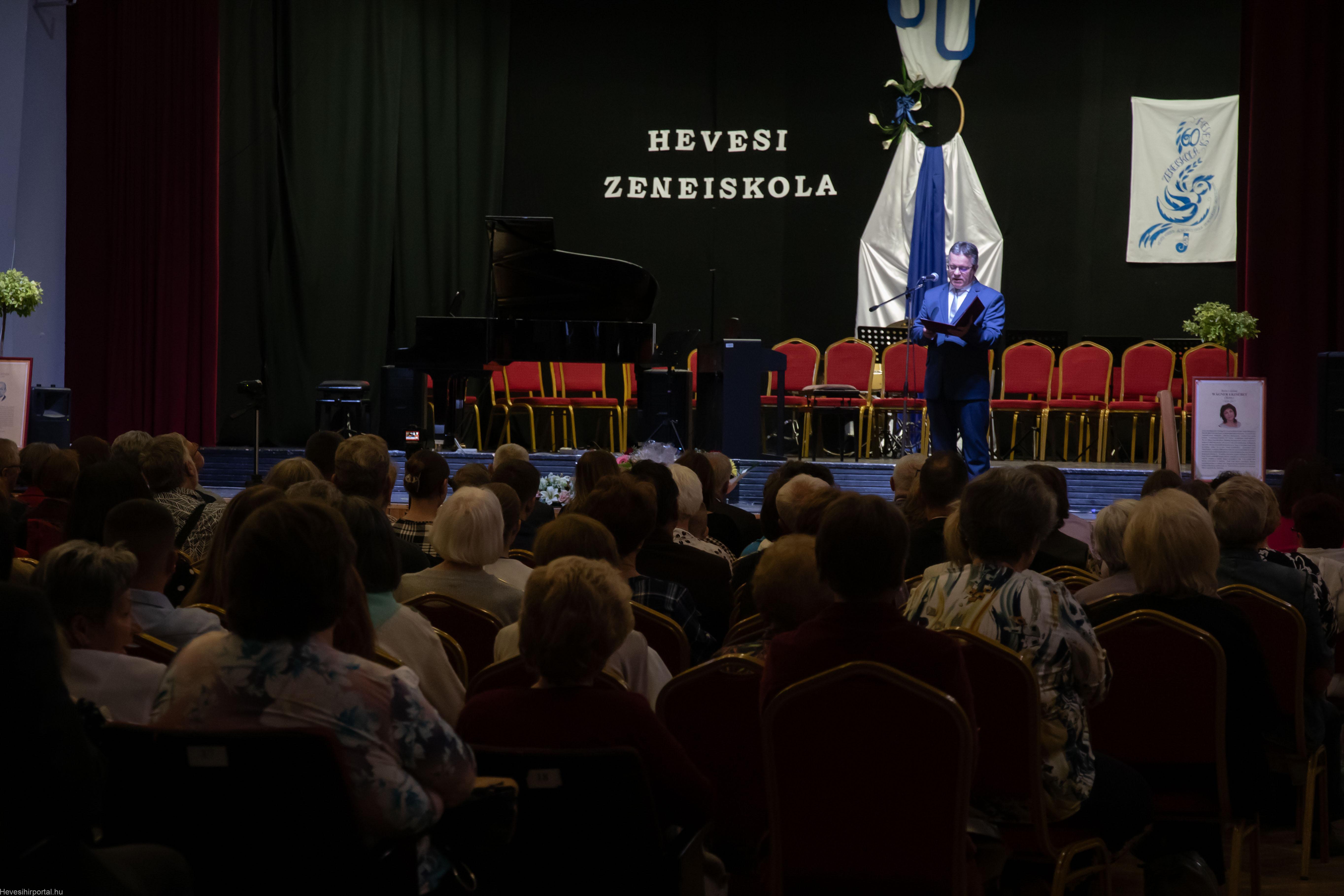 “Hat évtized, egy emberöltő, olyan időtáv, amely alatt nem csupán intézmények, hanem közösségek, hagyományok, értékek és életpályák születnek, fejlődnek és maradandóvá válnak. A Zeneiskola 1964-ben 4 tanárral és 84 növendékkel kezdte meg működését, s az elmúlt 60 év alatt Heves város és a térség meghatározó kulturális központjává vált. Egy olyan hely lett, ahol a zene nem csupán tantárgy, hanem híd a generációk, a közösségek, a lelkek között. Egy olyan tér, ahol a tanulás művészetté, az oktatás hivatássá, a tehetség kibontakoztatása pedig örök útravalóvá válik.