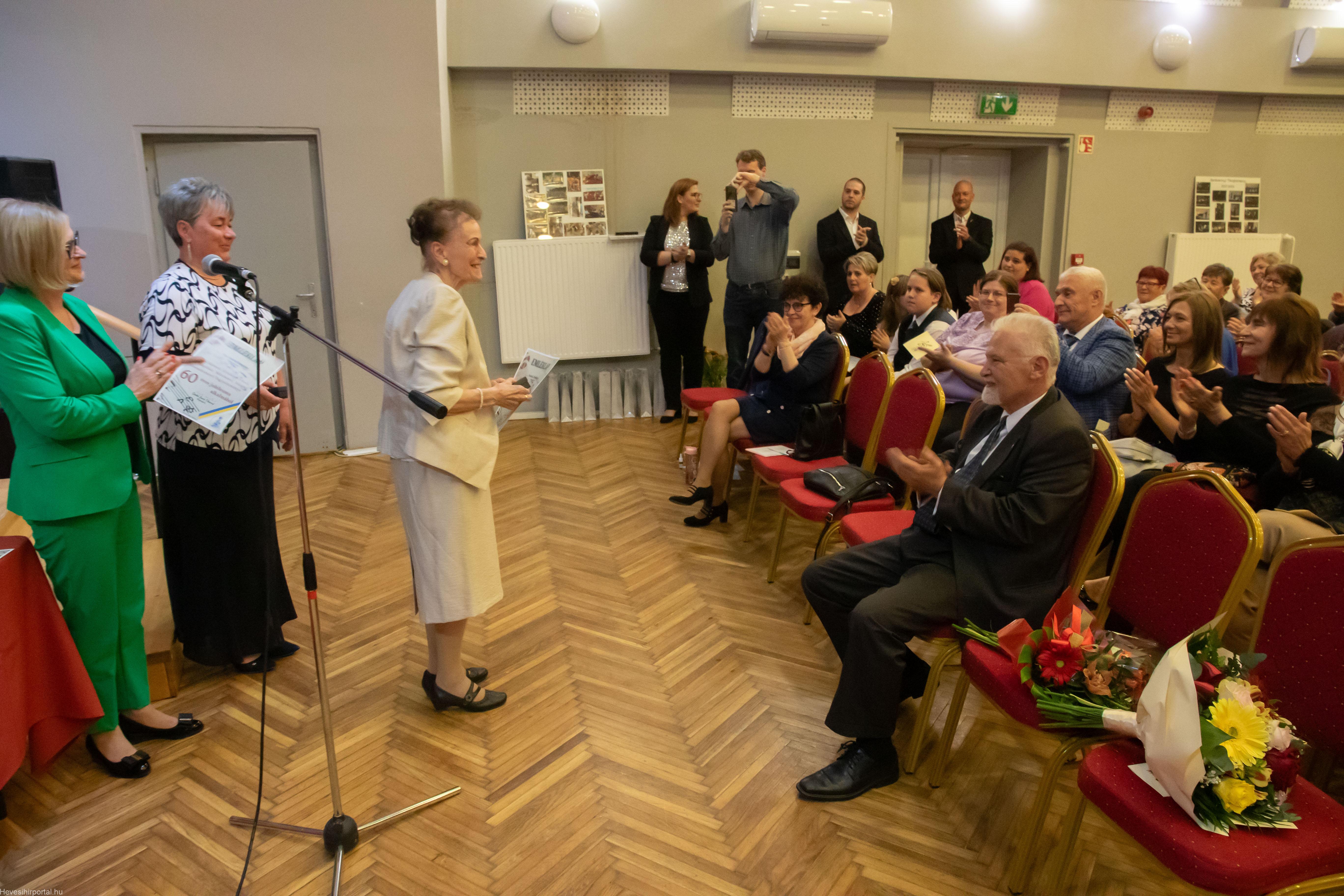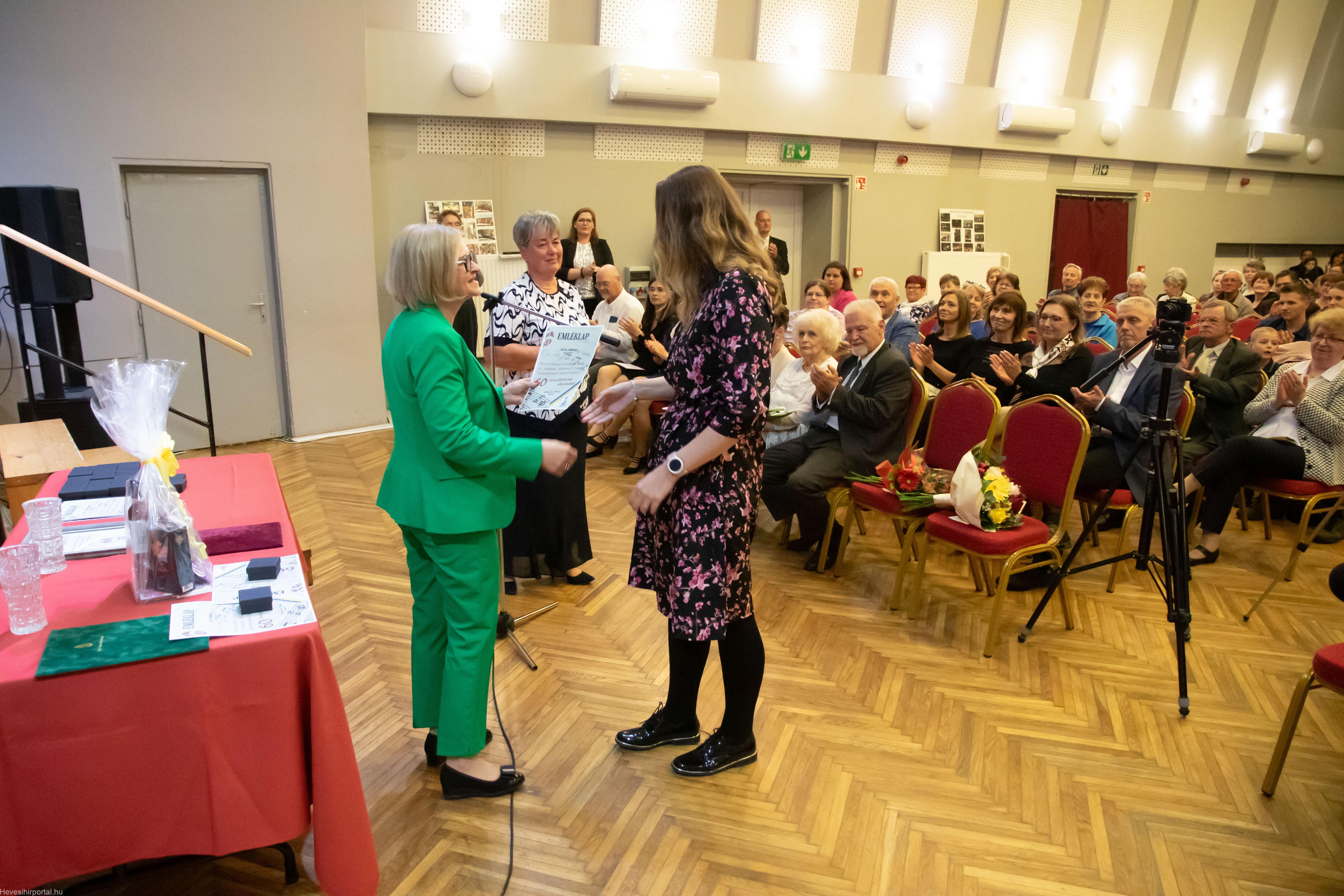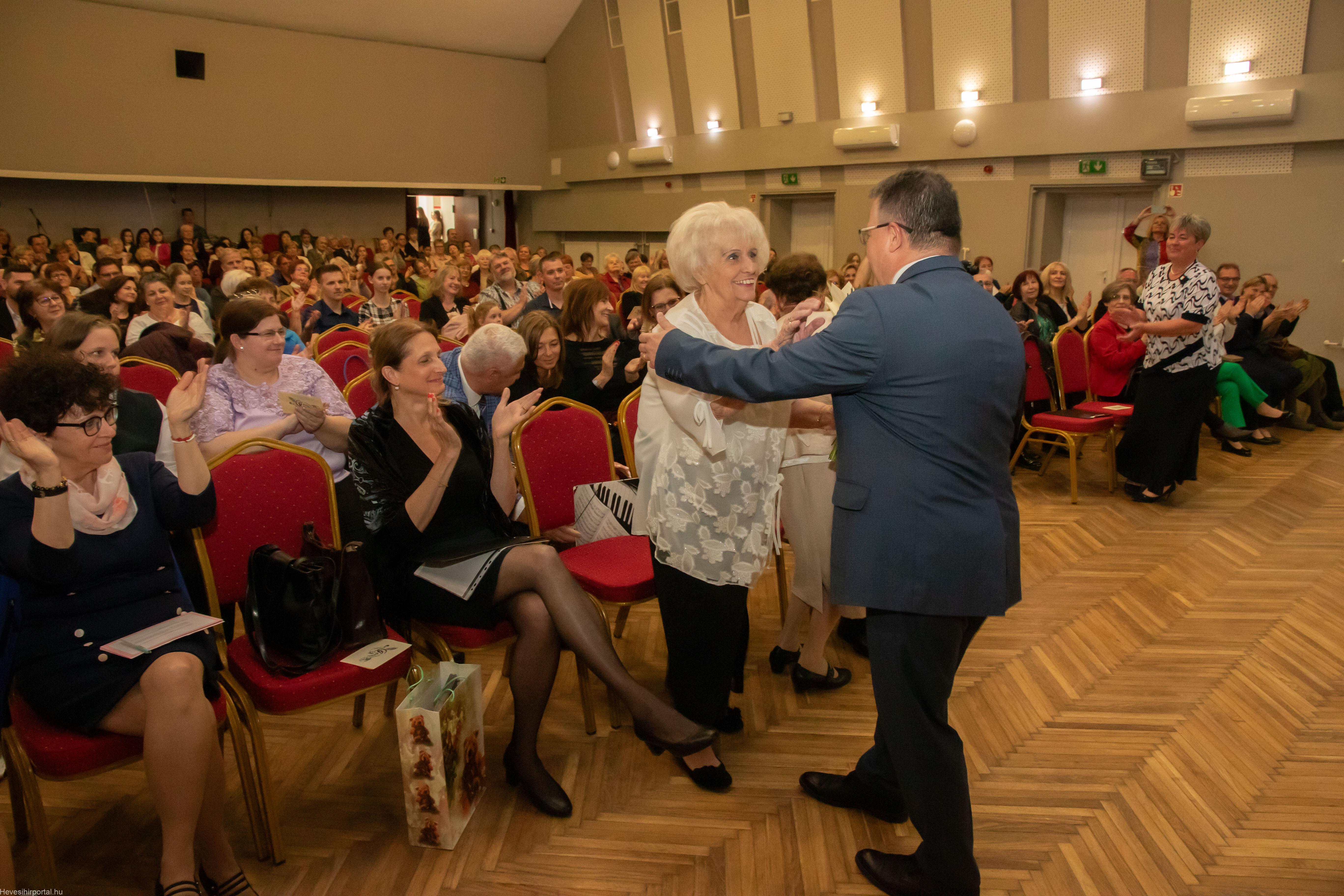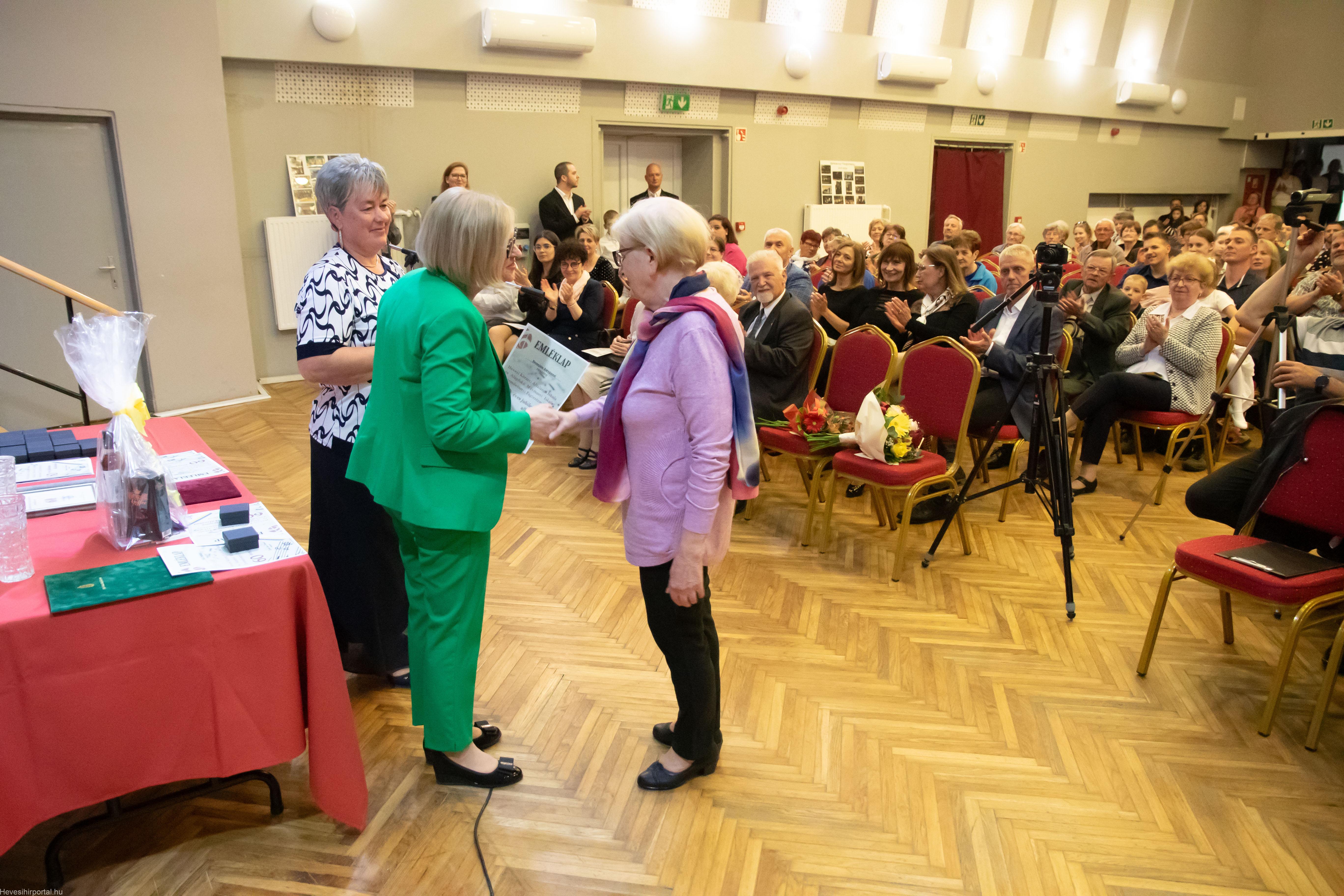 A nagyszabású eseményen Ballagó Zoltán díszoklevelet adott át a Zenesikola vezetőjének, Nagyné Gulyás Katalinnak a 60 éves jubileum alkalmából. A két alapítót, Szabó Tivadarné címzetes igazgatót, valamint Dr. Kádár Imréné zongoratanárt egy-egy virágcsokorral köszöntötte.