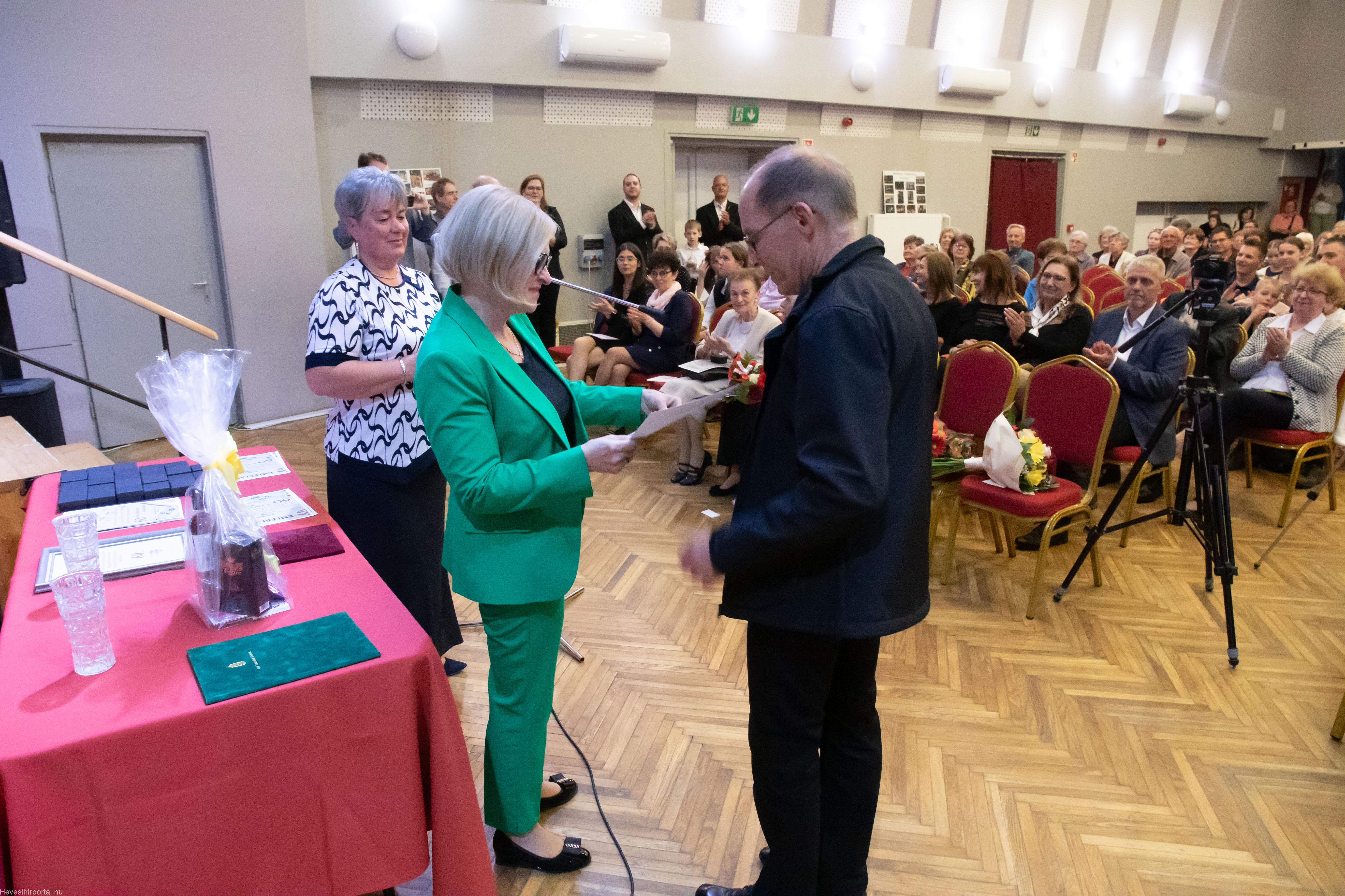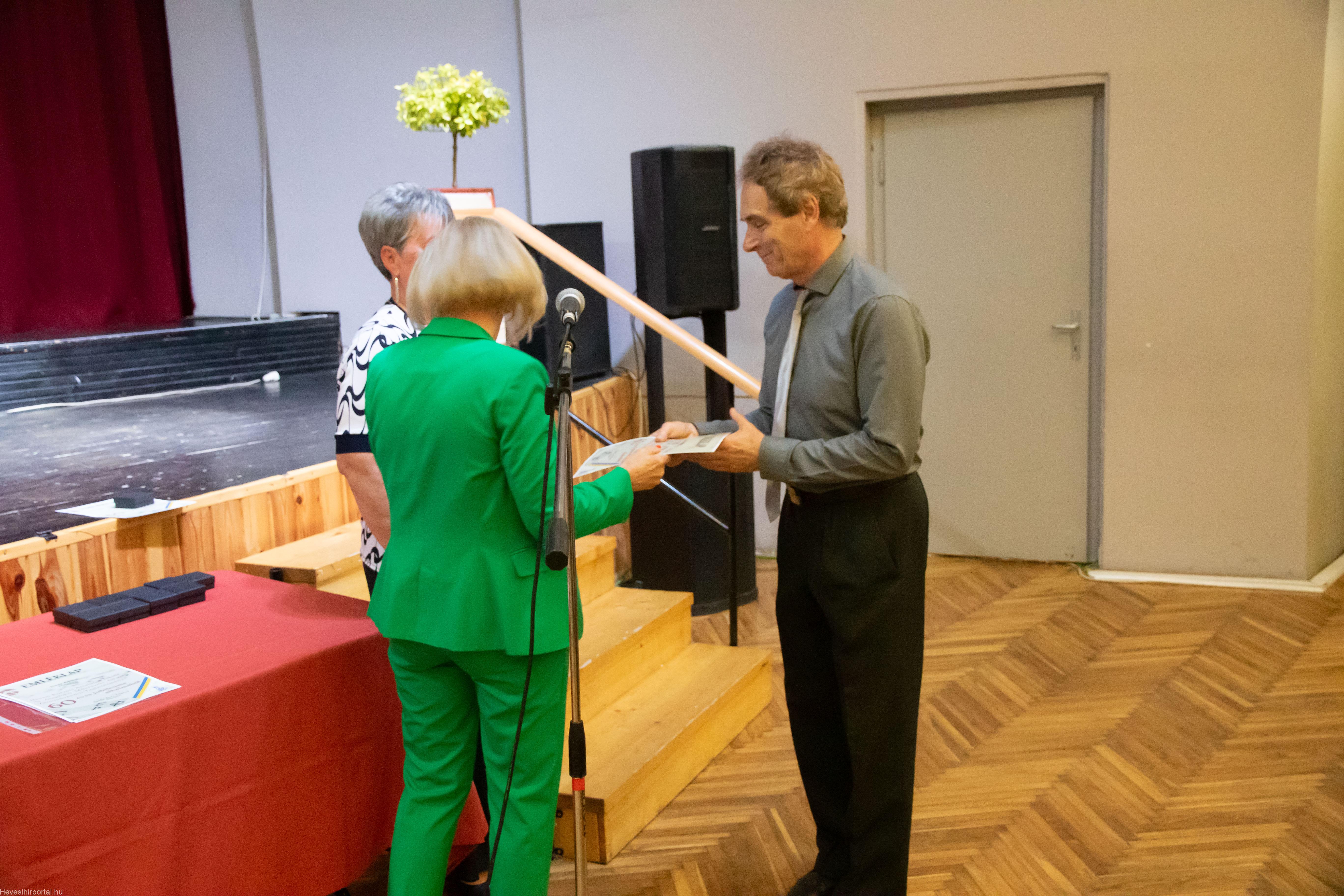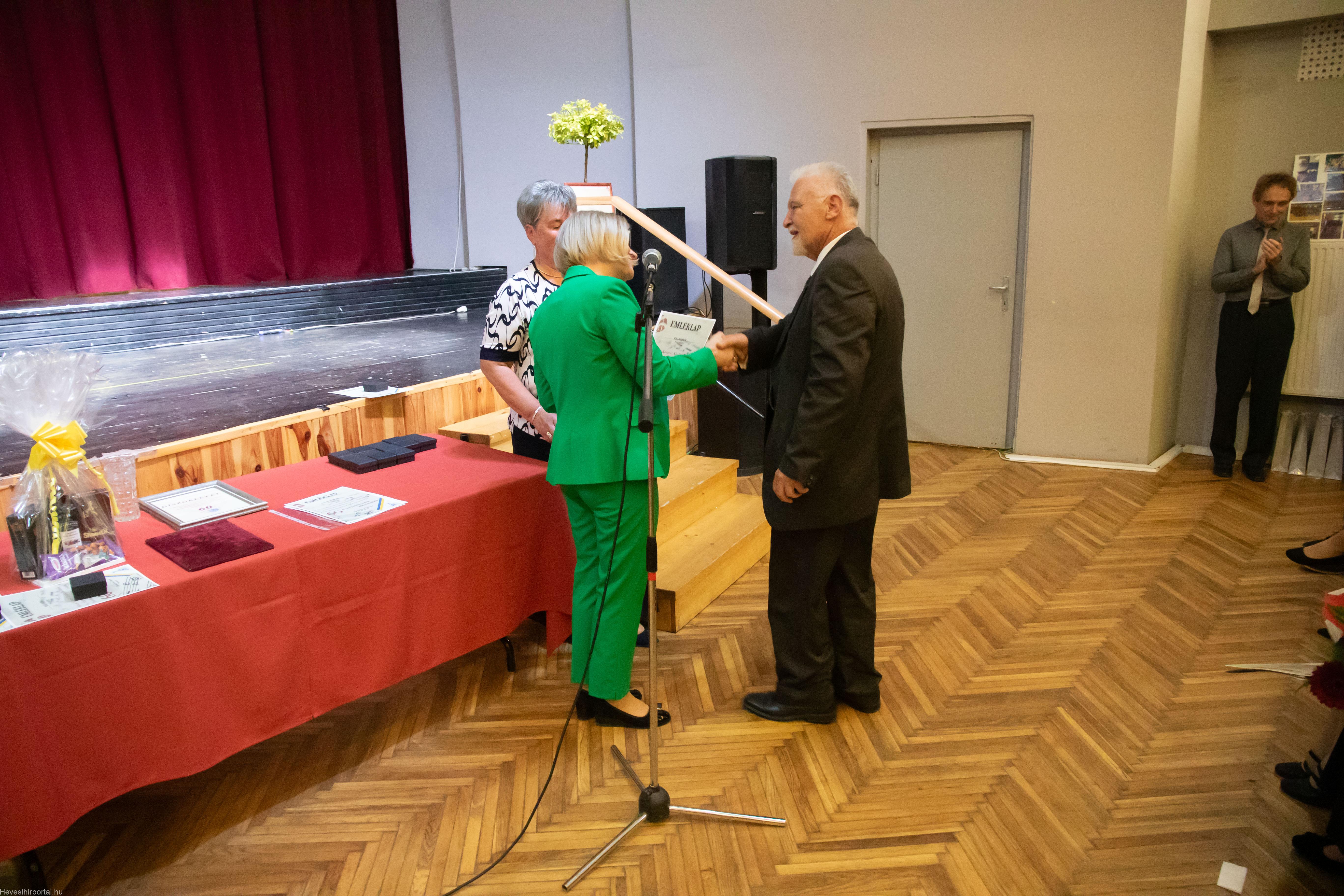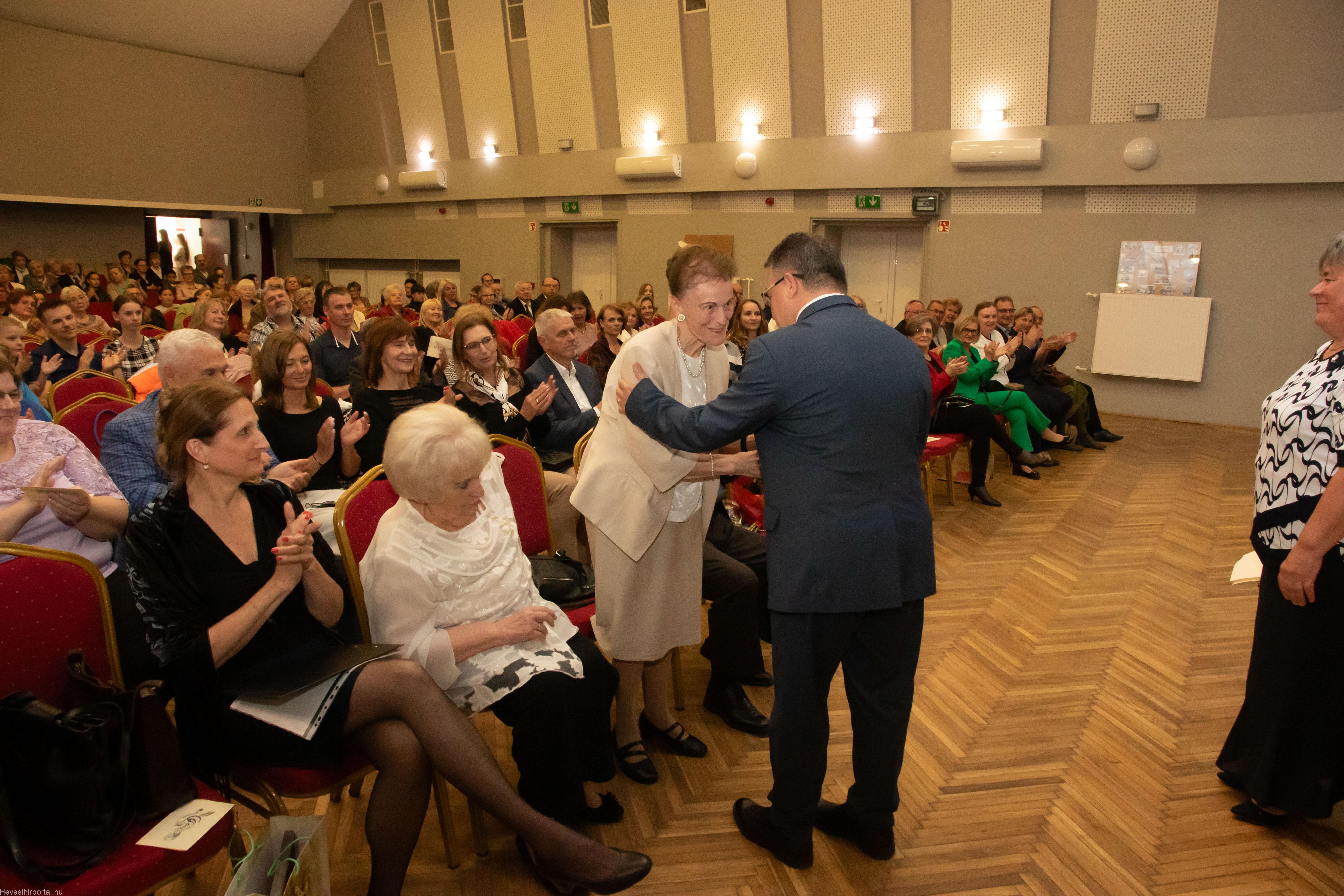 A nagyszabású eseményen Ballagó Zoltán díszoklevelet adott át a Zenesikola vezetőjének, Nagyné Gulyás Katalinnak a 60 éves jubileum alkalmából. A két alapítót, Szabó Tivadarné címzetes igazgatót, valamint Dr. Kádár Imréné zongoratanárt egy-egy virágcsokorral köszöntötte.