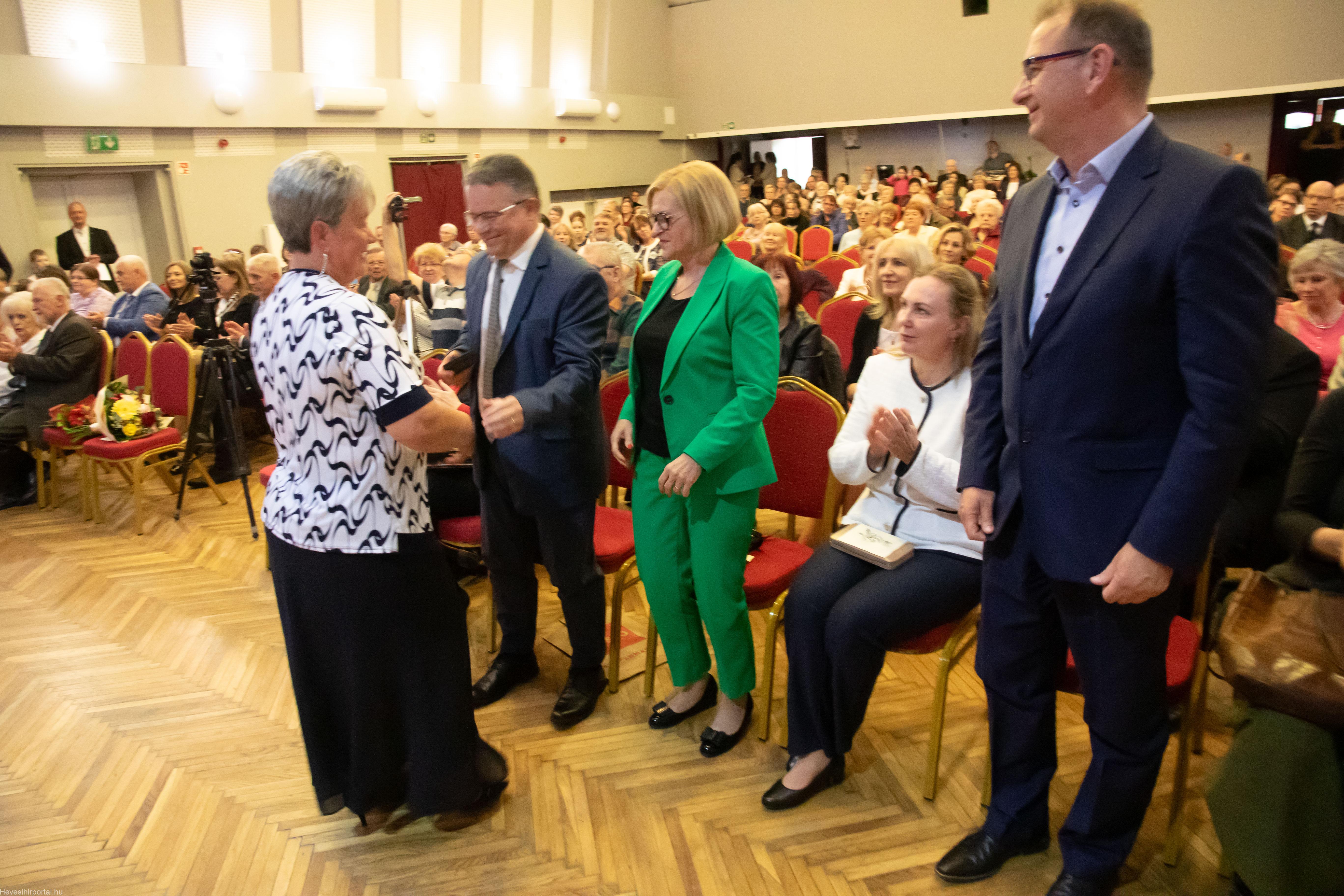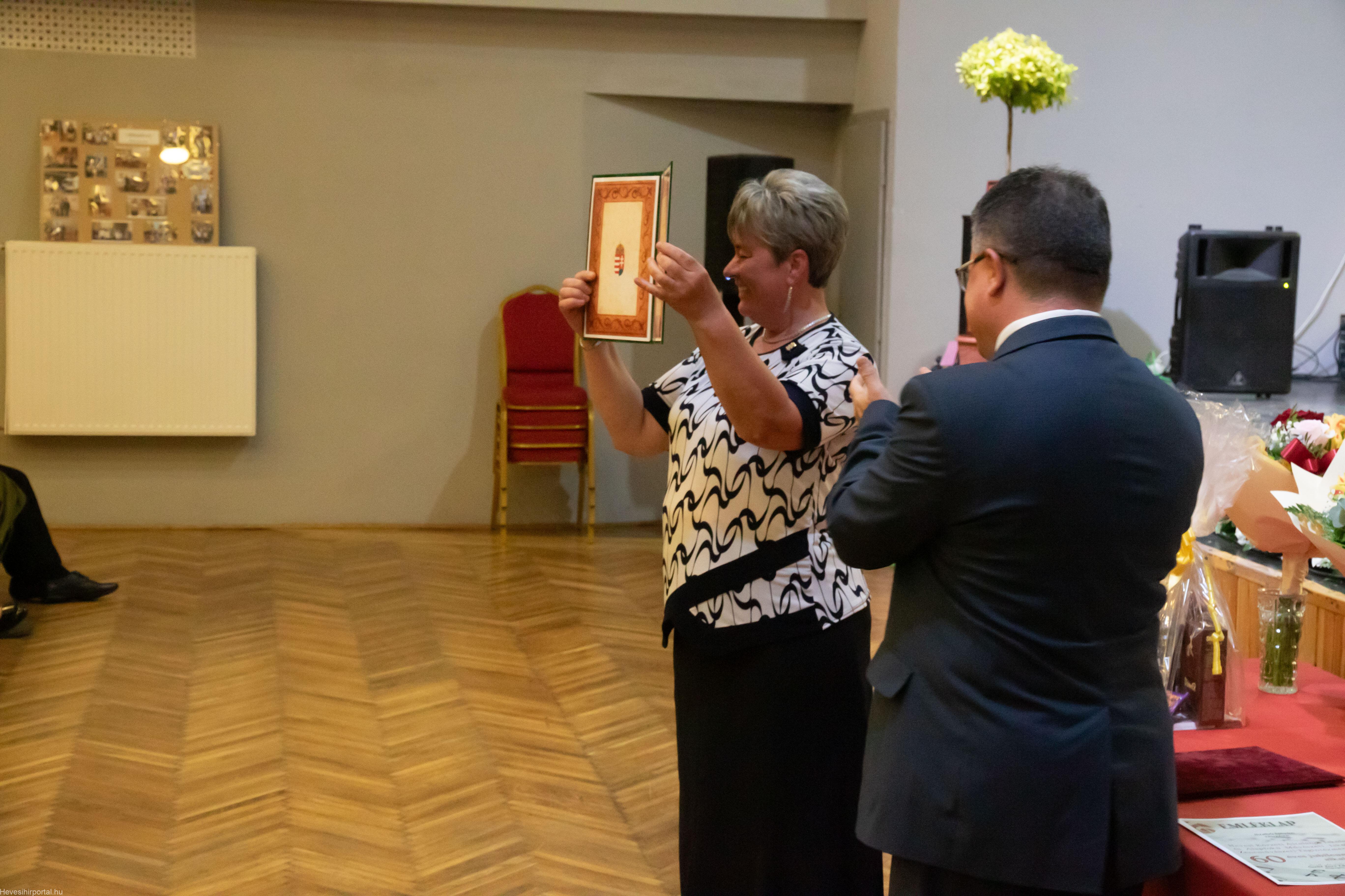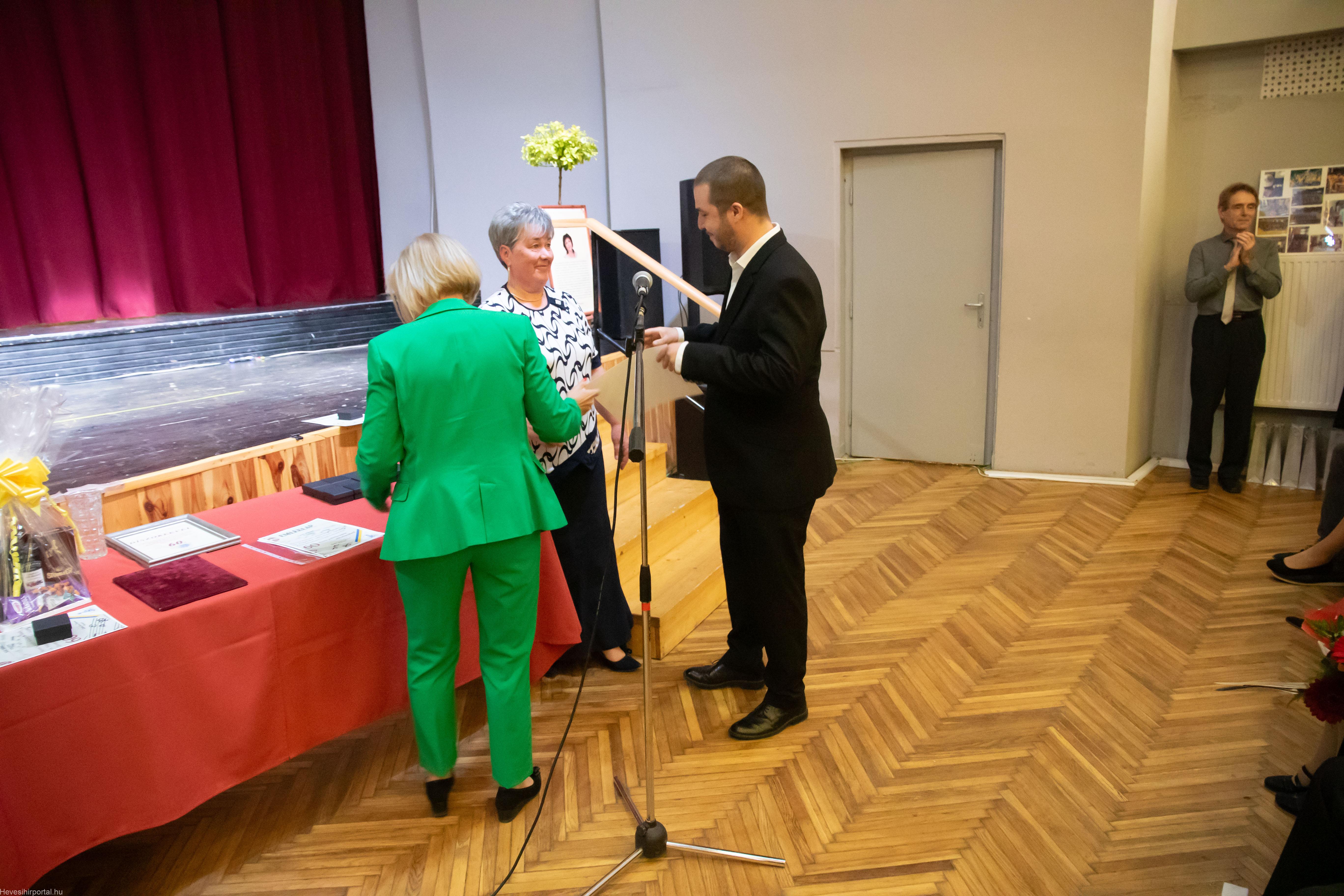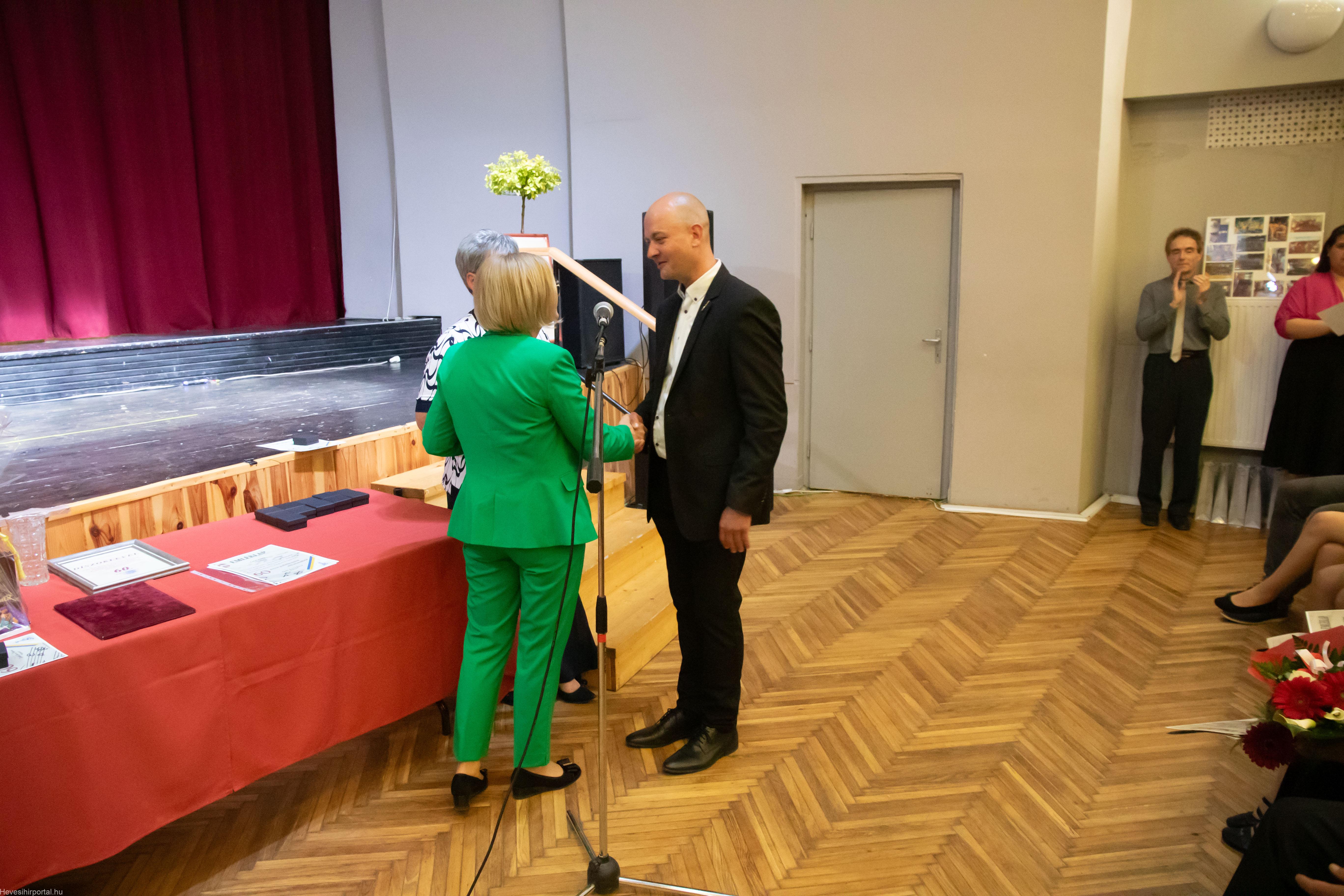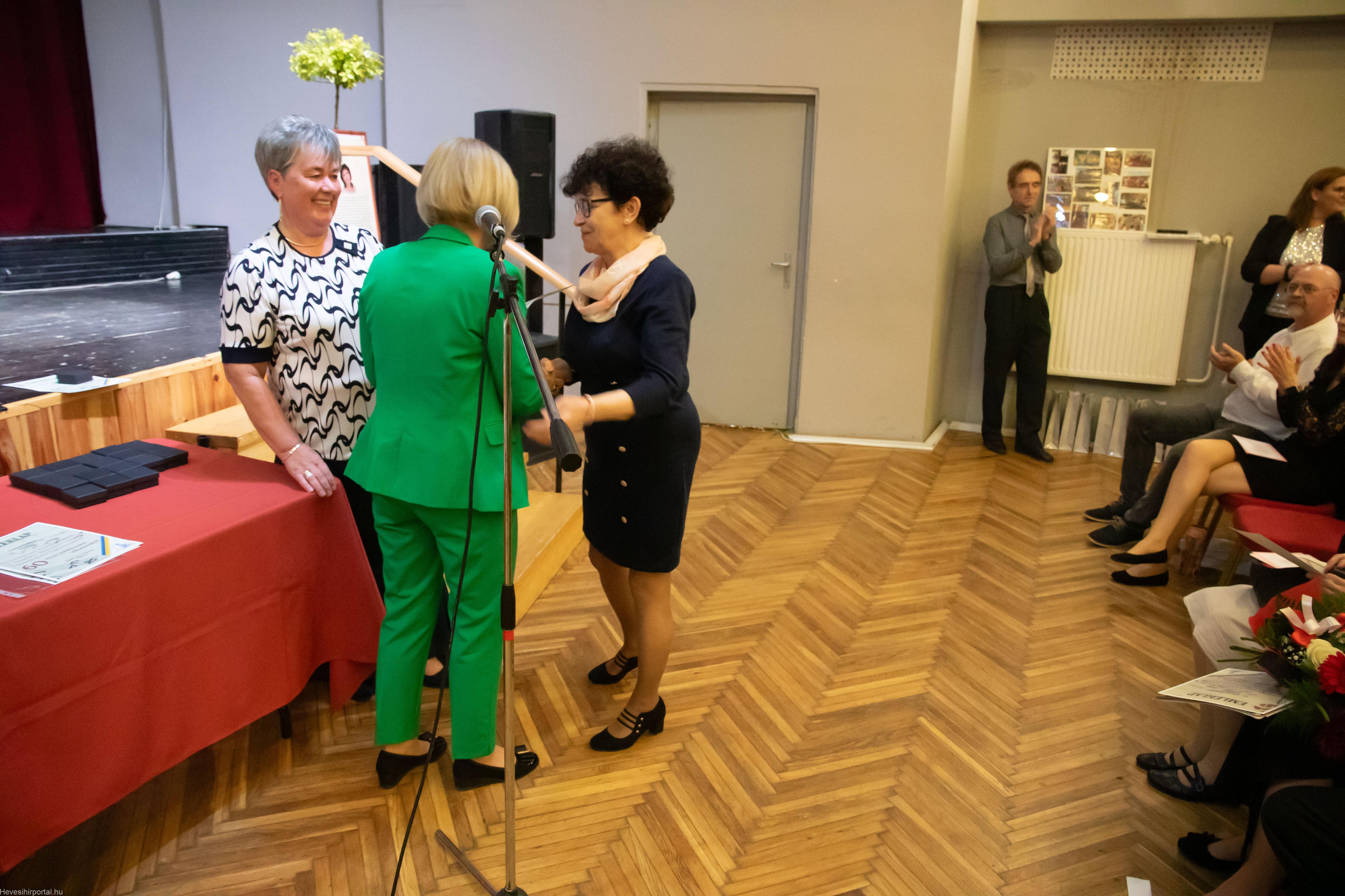 A nagyszabású eseményen Ballagó Zoltán díszoklevelet adott át a Zenesikola vezetőjének, Nagyné Gulyás Katalinnak a 60 éves jubileum alkalmából. A két alapítót, Szabó Tivadarné címzetes igazgatót, valamint Dr. Kádár Imréné zongoratanárt egy-egy virágcsokorral köszöntötte.