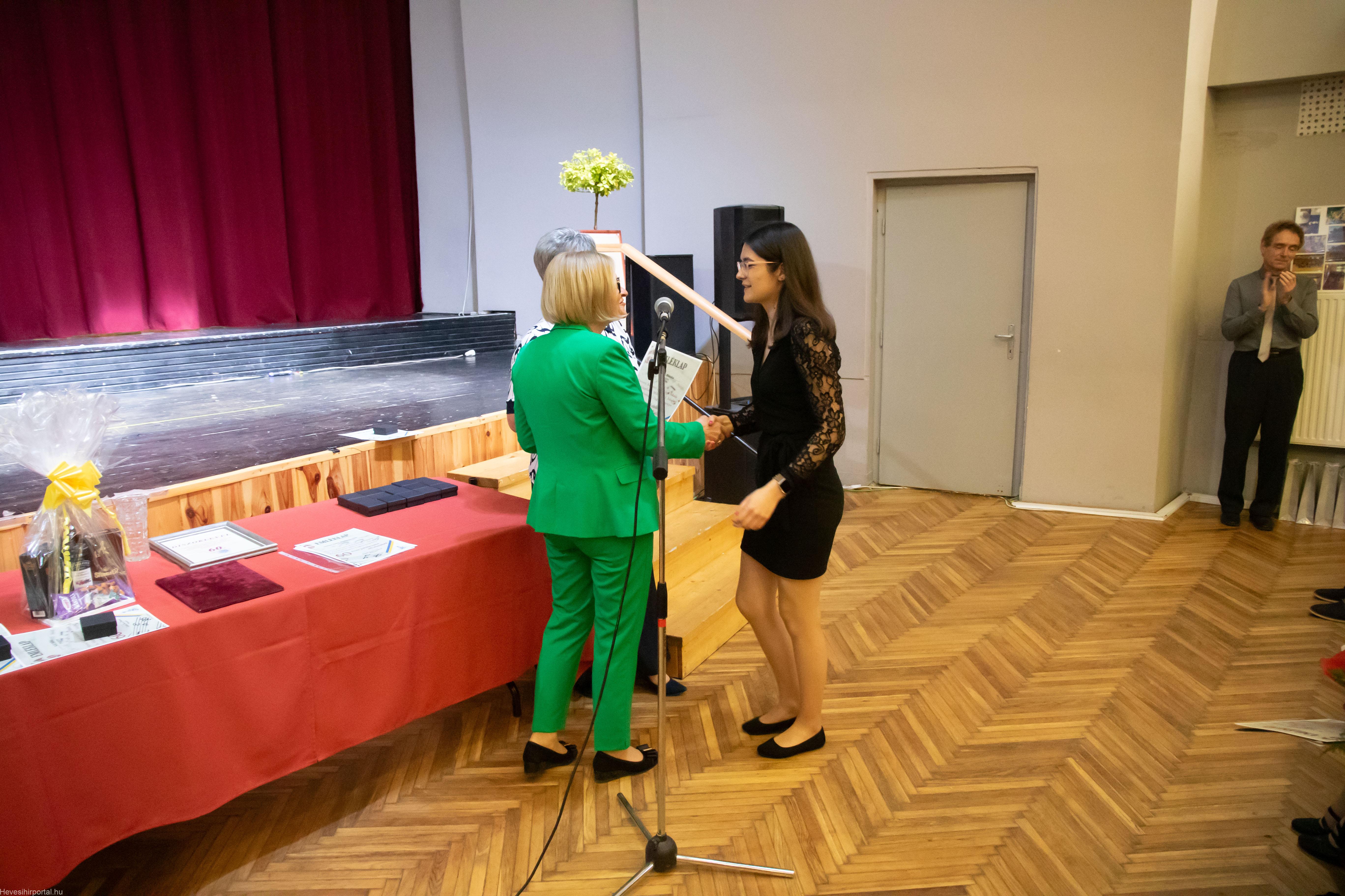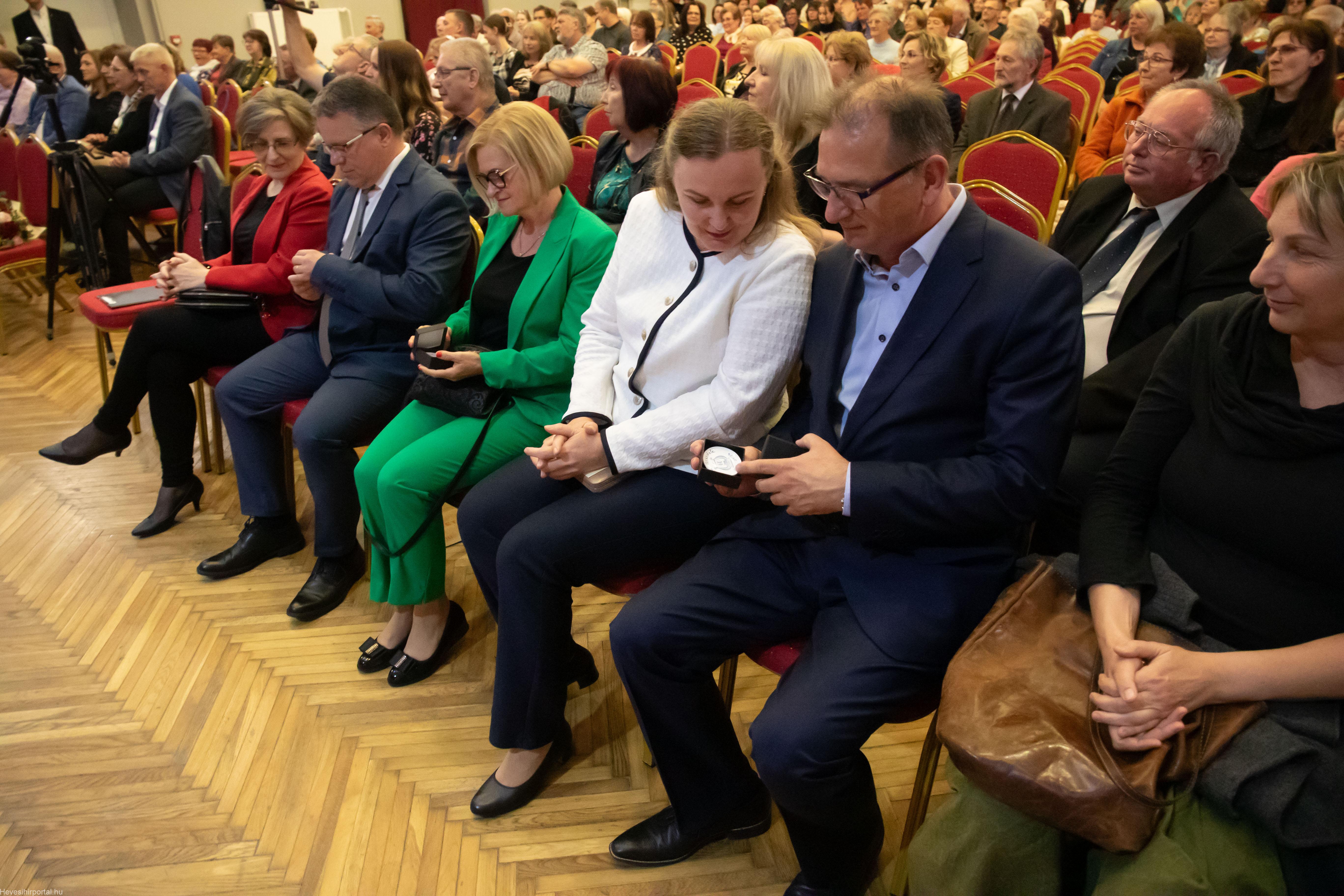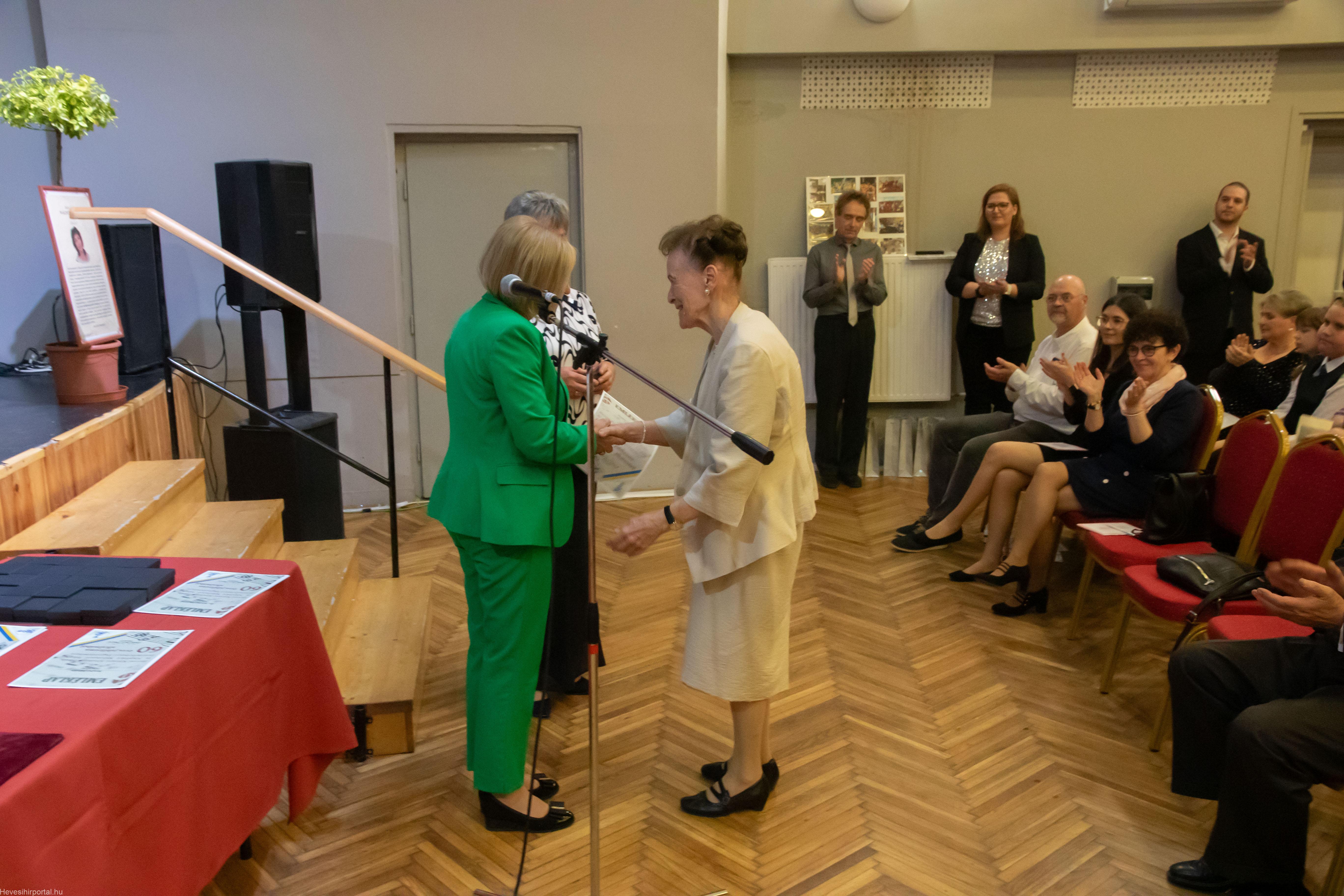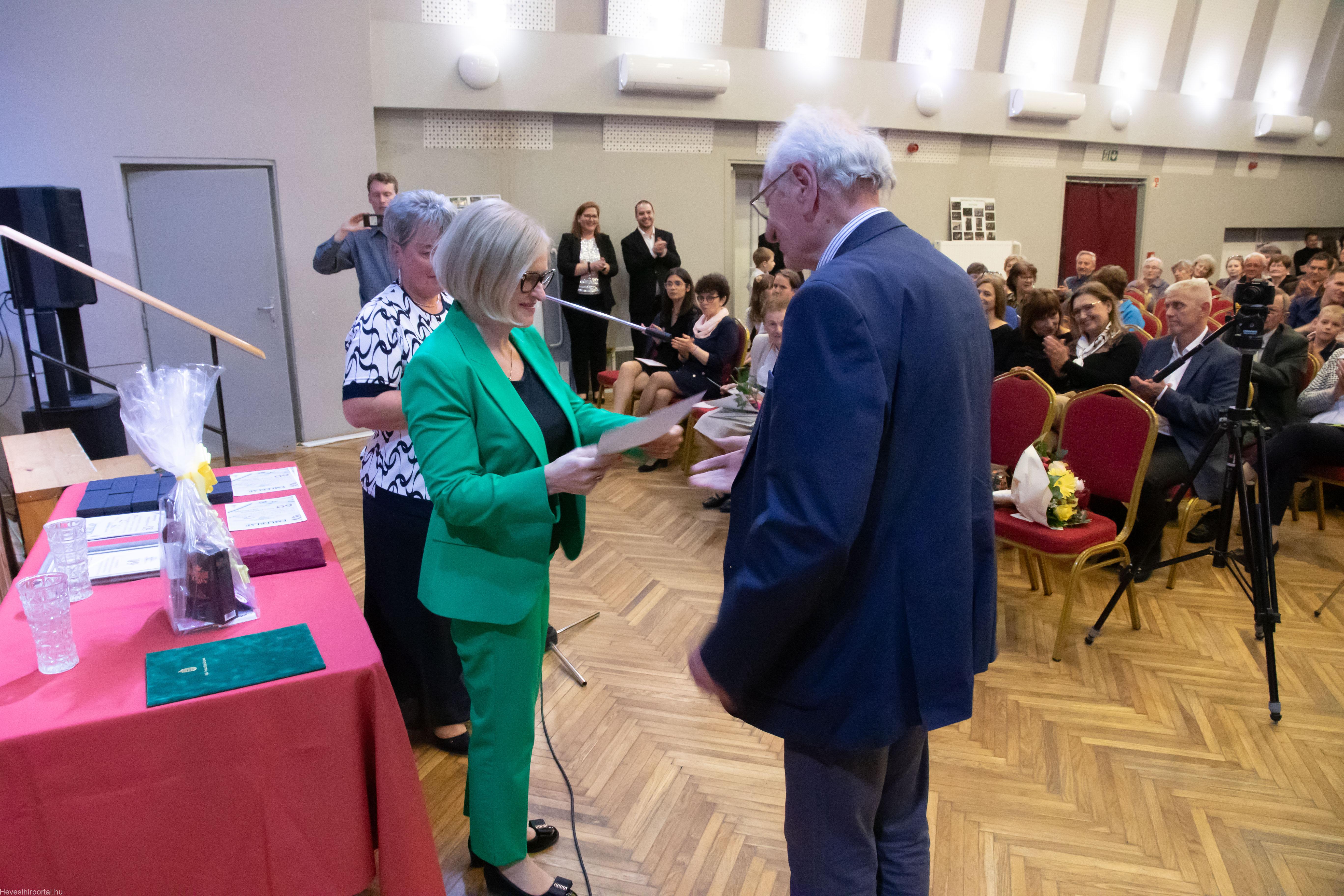 A nagyszabású eseményen Ballagó Zoltán díszoklevelet adott át a Zenesikola vezetőjének, Nagyné Gulyás Katalinnak a 60 éves jubileum alkalmából. A két alapítót, Szabó Tivadarné címzetes igazgatót, valamint Dr. Kádár Imréné zongoratanárt egy-egy virágcsokorral köszöntötte.