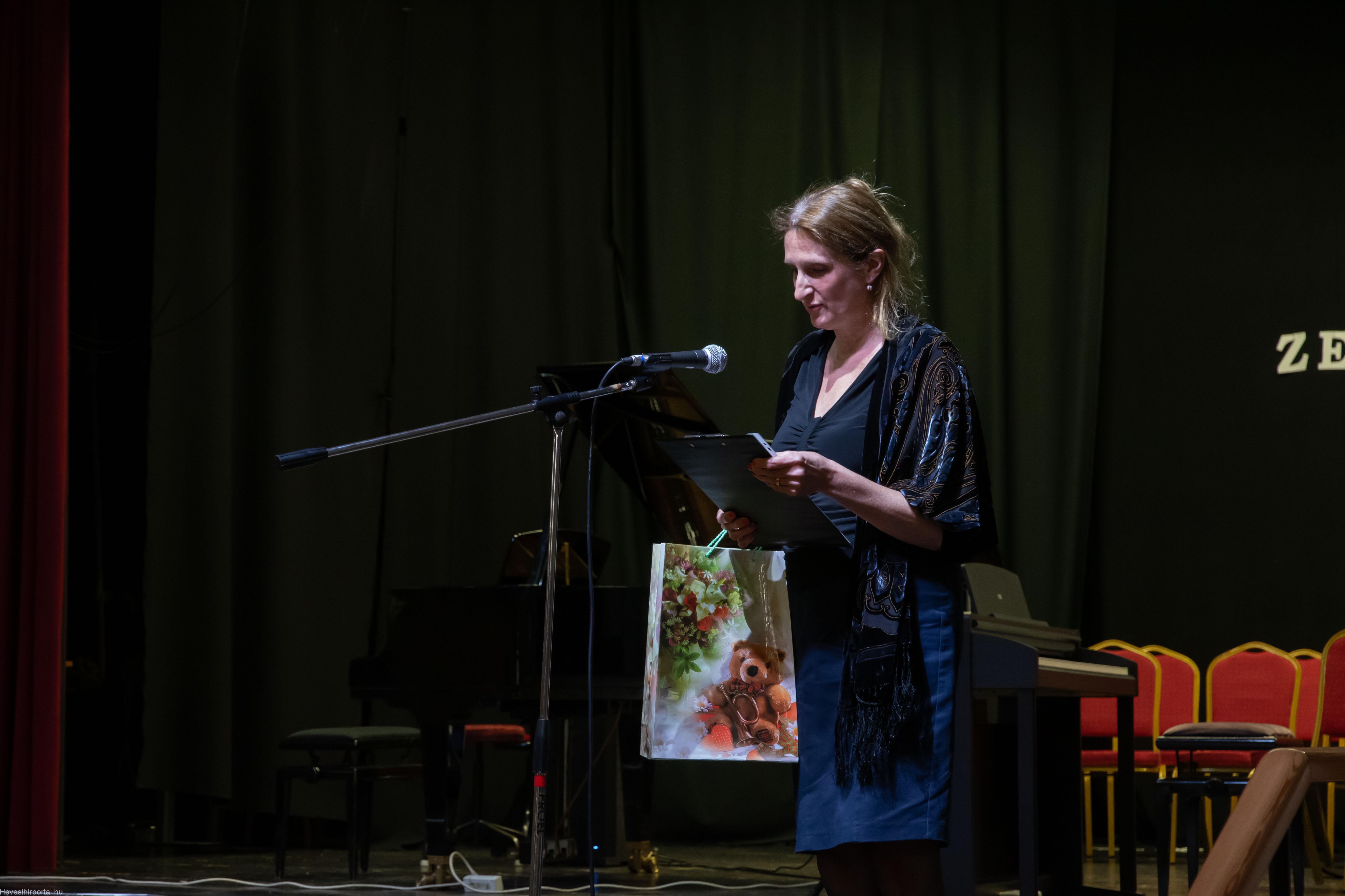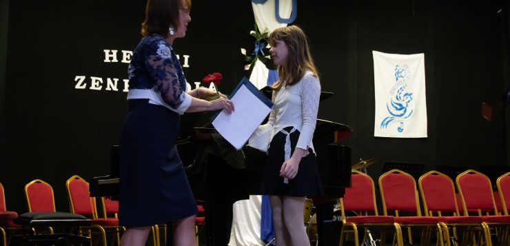A műsor Barczi-Benett Edina, a Magyar Zeneiskolák és Művészeti Iskolák Szövetsége elnökségi tagjának ünnepi gondolataival folytatódott, aki átadta az MZMSZ díszolvelelét a tagintézmény-igazgatónak.