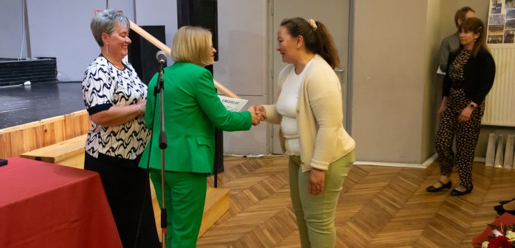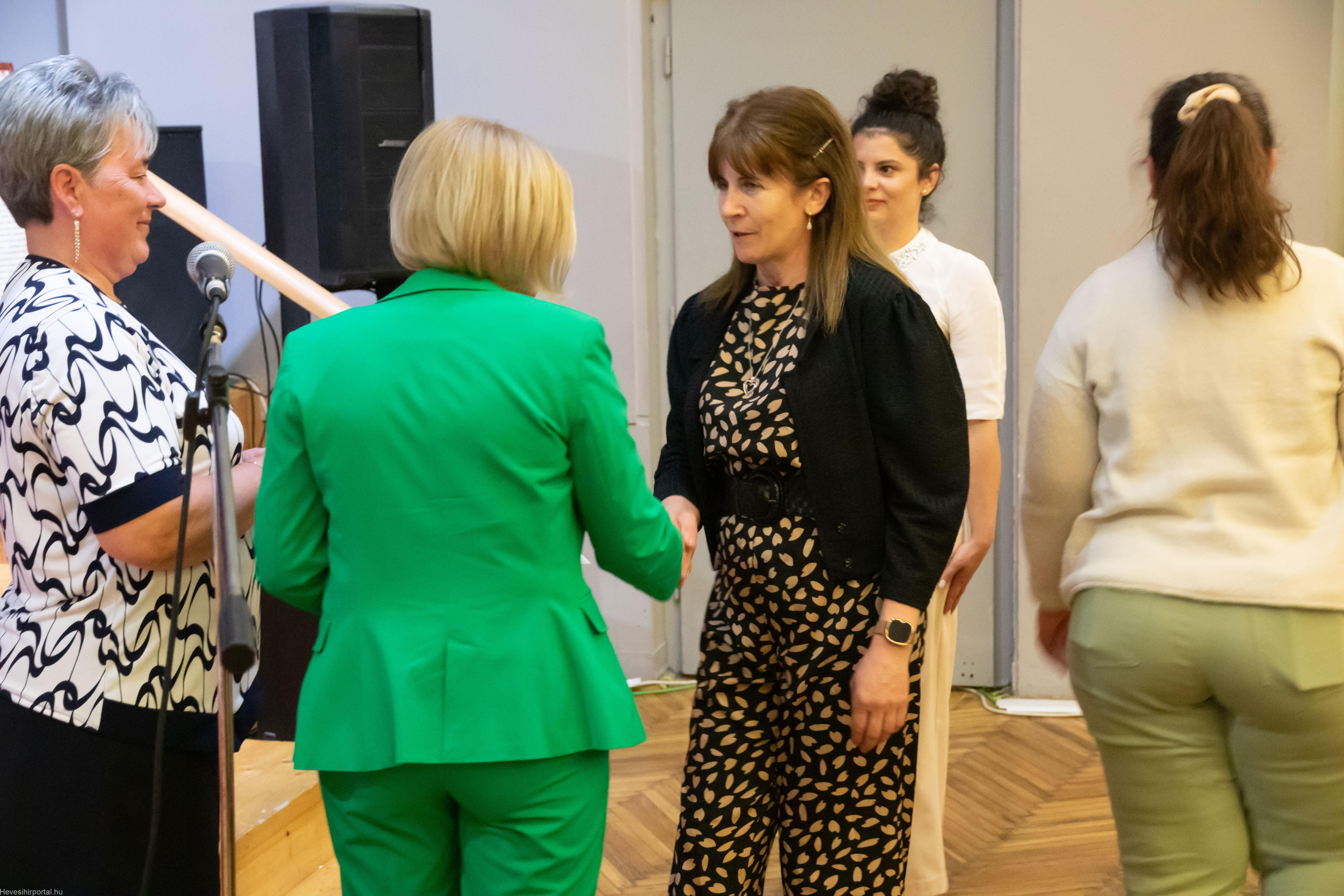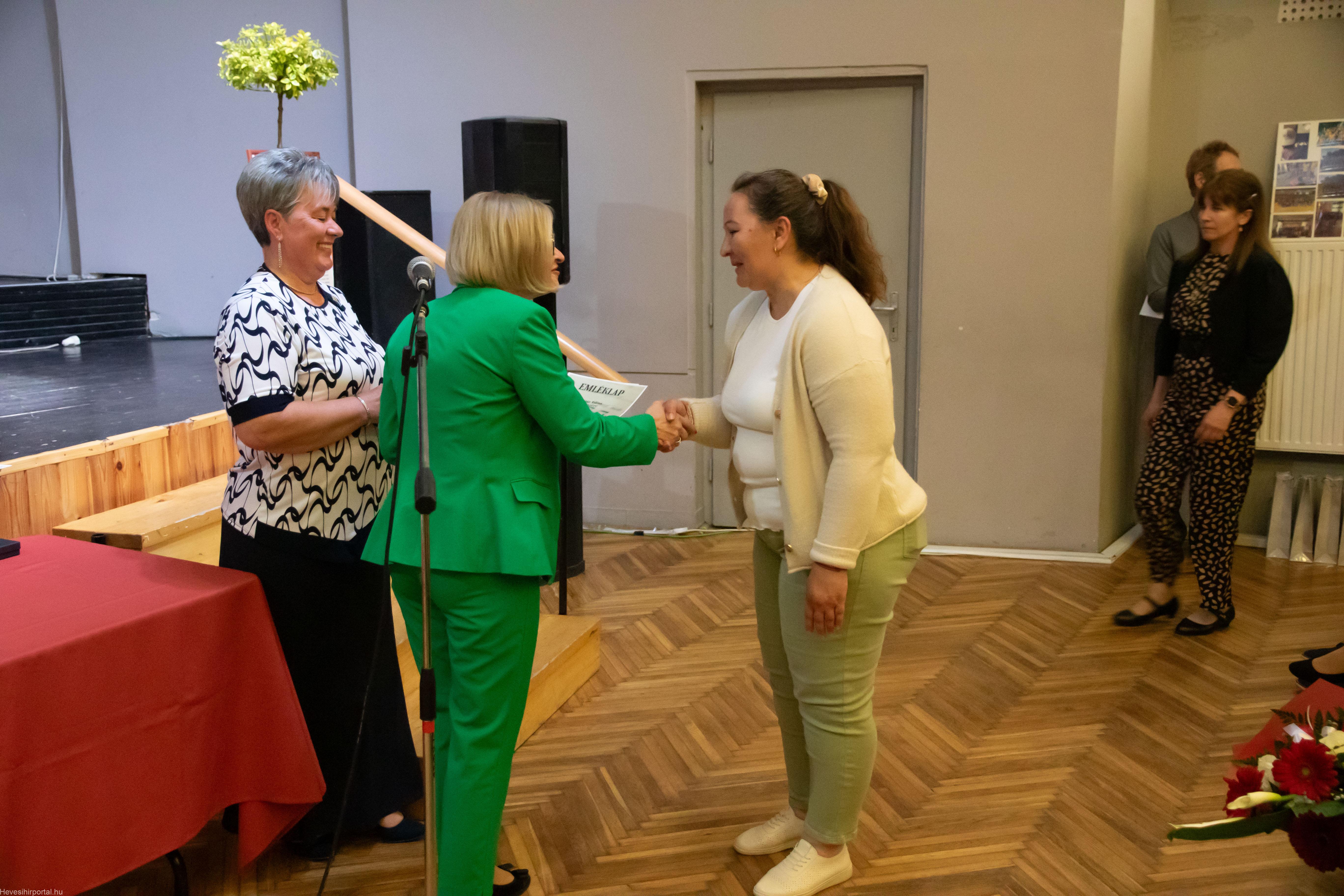 Emléklapot vehettek át a volt és jelenlegi kollégák, dolgozók Szabó Imre Tiborné főigazgatótól és Nagyné Gulyás Katalin tagintézmény-igazgatótól.