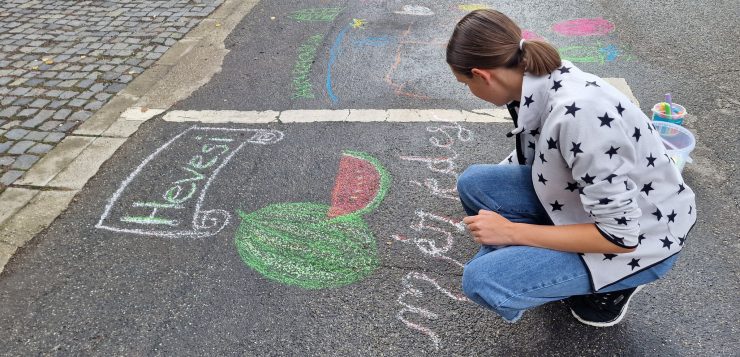 Az idei Városnapok alkalmából aszfaltrajzversenyt hirdetett a könyvtár – Városunk, Heves címmel. Az esős idő sajnos elbizonytalanította a rajzolni vágyókat, de a kitartó jelentkezők igazi napsütésben, felszáradt aszfalton rajzolhatták le a megálmodott, előre megtervezett, illetve a helyszínen kigondolt képeket.