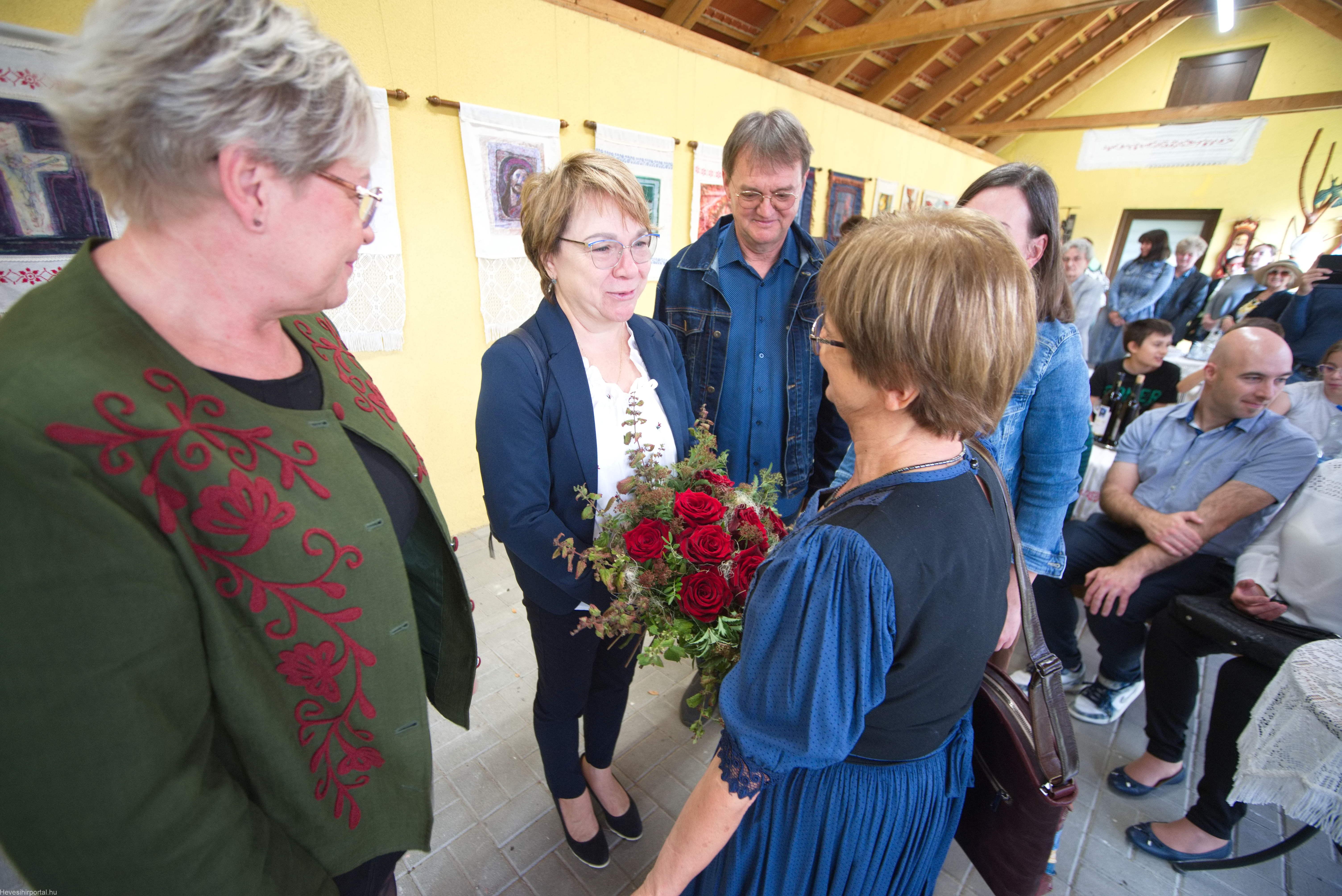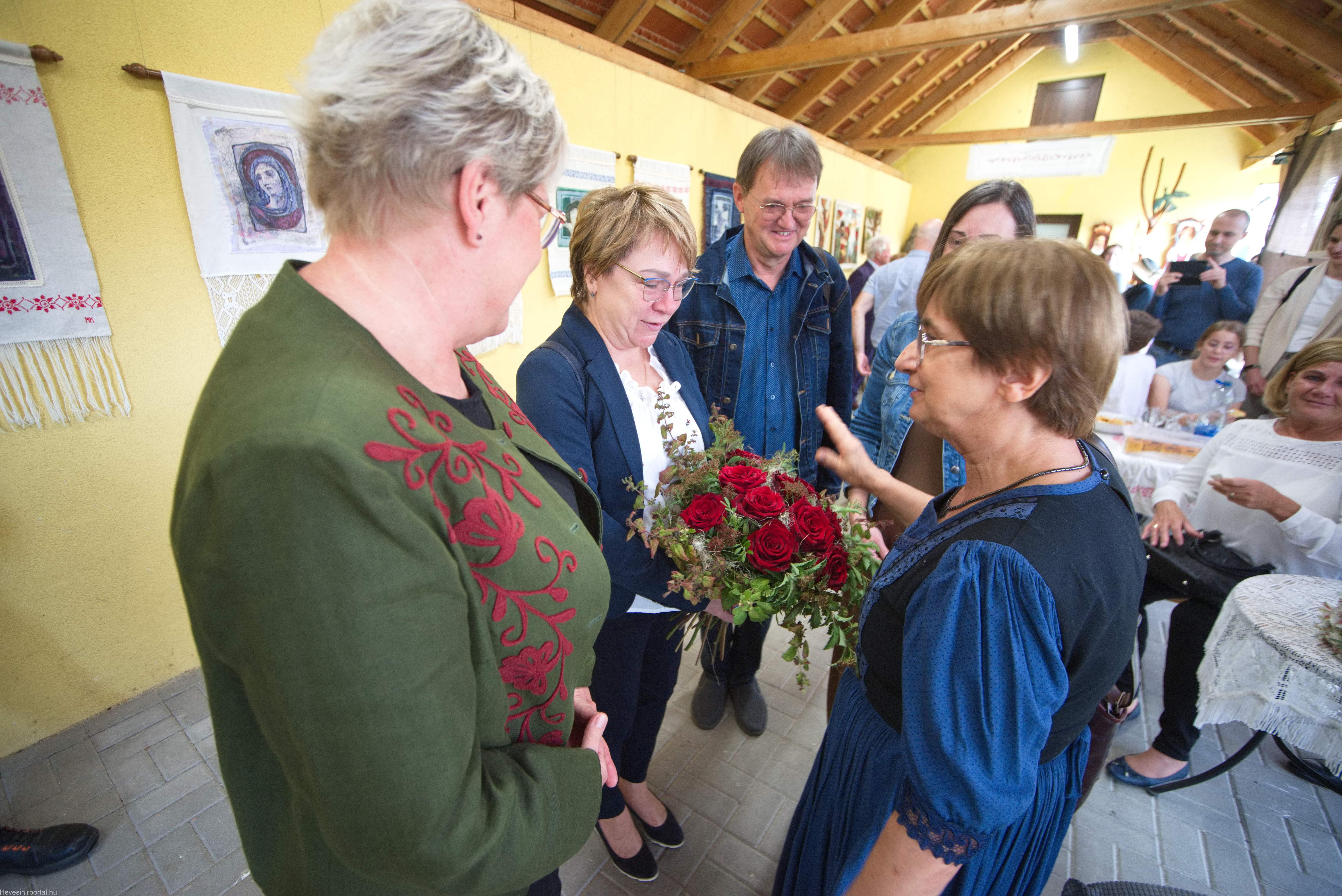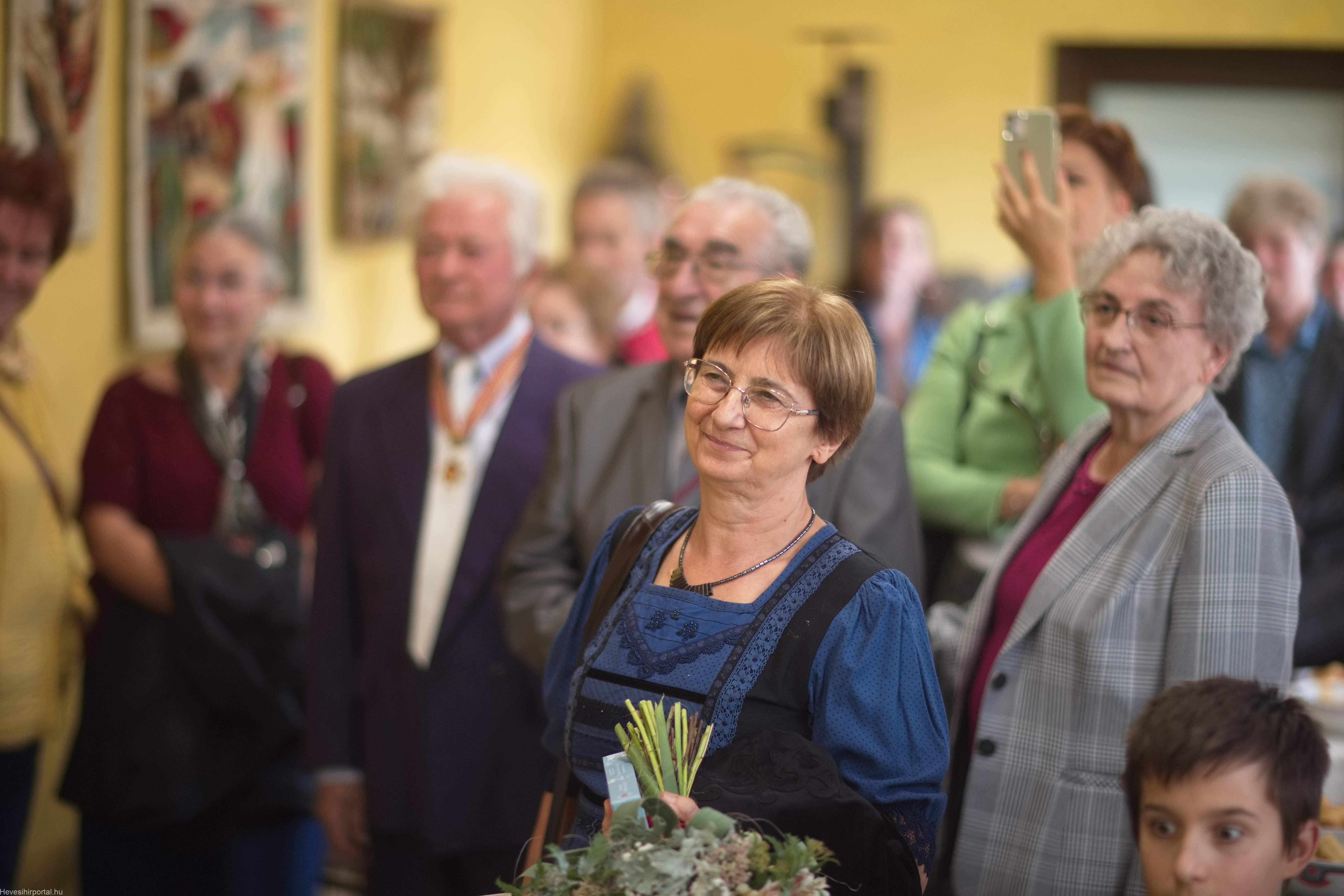A gyerekek szemében ő volt az a tanár, aki hitt bennük, aki felfedezte bennük a tehetséget, és segített a kibontakozásukban. Negyven év alatt generációkat nevelt a szépre és az érzékenységre. Így válik teljesen érthetővé a kiállítás címe: „Örökség”. Örökség a művekben, amelyekben ott él a hit, a szeretet és a természet tisztelete. És örökség az emberekben – tanítványokban, gyerekekben, családban, közösségben – akik mind viszik tovább azt a szellemi és lelki gazdagságot, amelyet tőle kaptak” – hangzott el Erdészné Turcsányi Katalin köszöntőjében, aki kiemelte azt is, mennyire szerencsés, hiszen Erzsike a Harmónia Alapfokú Művészeti Iskola képzőművész pedagógusaként már két évtizede a kollégája, valamint a Blaha Színkör egykori aktív tagjaként alkotótársa és barátja is egyben, akivel a múlt és a jelen sok-sok szállal köti össze.