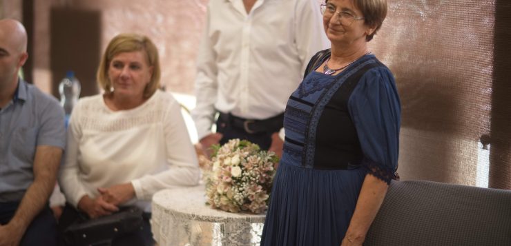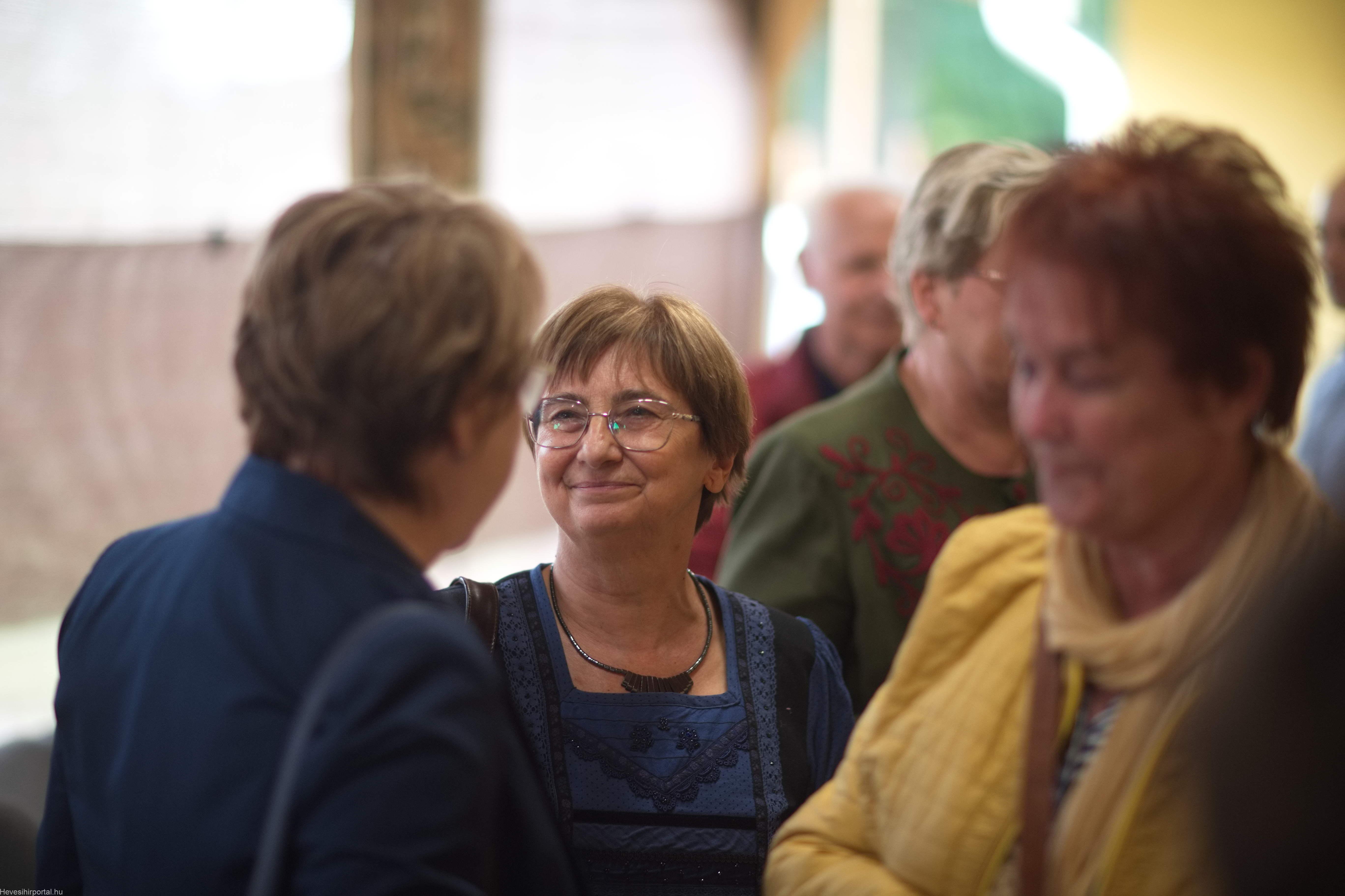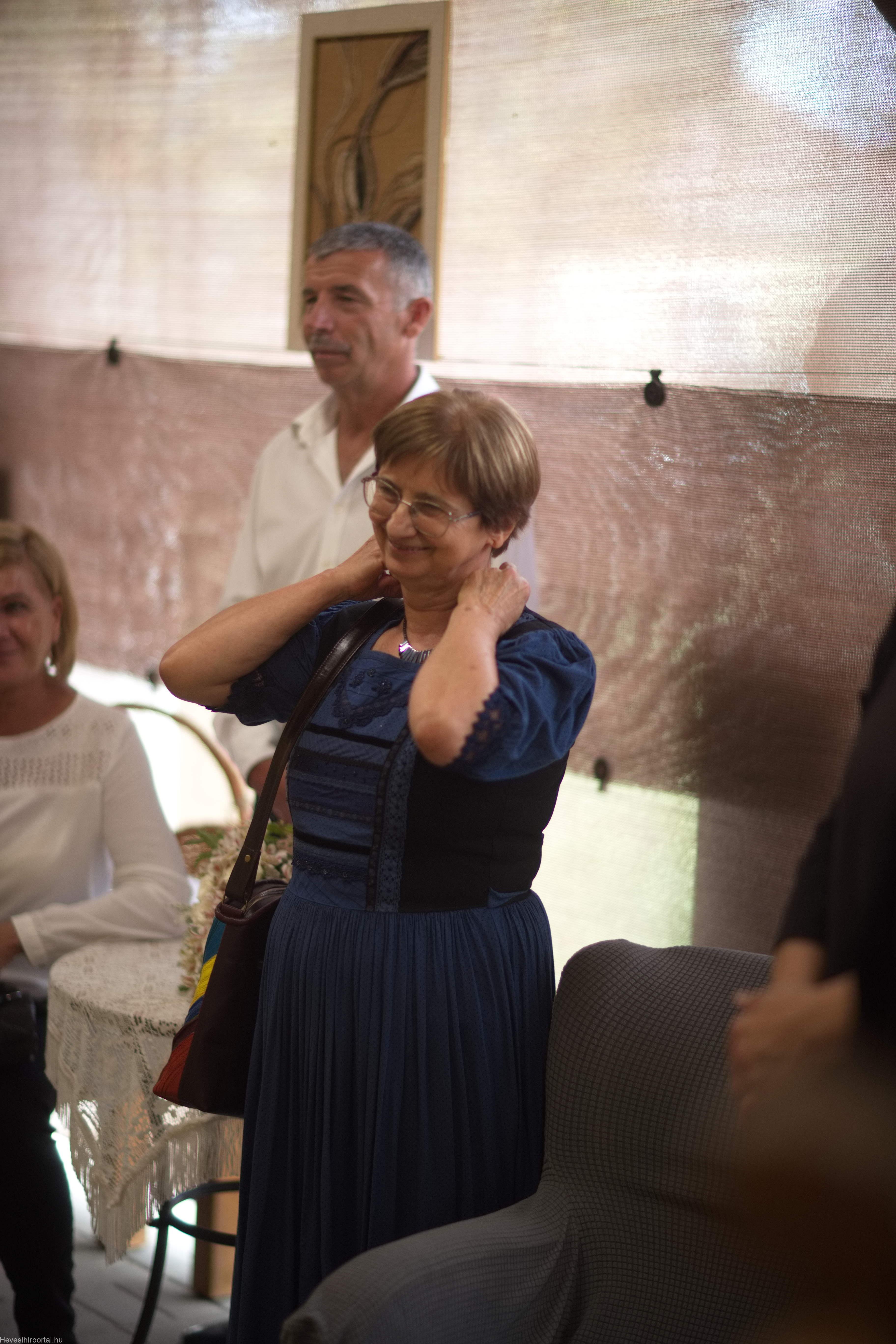 A gyerekek szemében ő volt az a tanár, aki hitt bennük, aki felfedezte bennük a tehetséget, és segített a kibontakozásukban. Negyven év alatt generációkat nevelt a szépre és az érzékenységre. Így válik teljesen érthetővé a kiállítás címe: „Örökség”. Örökség a művekben, amelyekben ott él a hit, a szeretet és a természet tisztelete. És örökség az emberekben – tanítványokban, gyerekekben, családban, közösségben – akik mind viszik tovább azt a szellemi és lelki gazdagságot, amelyet tőle kaptak” – hangzott el Erdészné Turcsányi Katalin köszöntőjében, aki kiemelte azt is, mennyire szerencsés, hiszen Erzsike a Harmónia Alapfokú Művészeti Iskola képzőművész pedagógusaként már két évtizede a kollégája, valamint a Blaha Színkör egykori aktív tagjaként alkotótársa és barátja is egyben, akivel a múlt és a jelen sok-sok szállal köti össze.