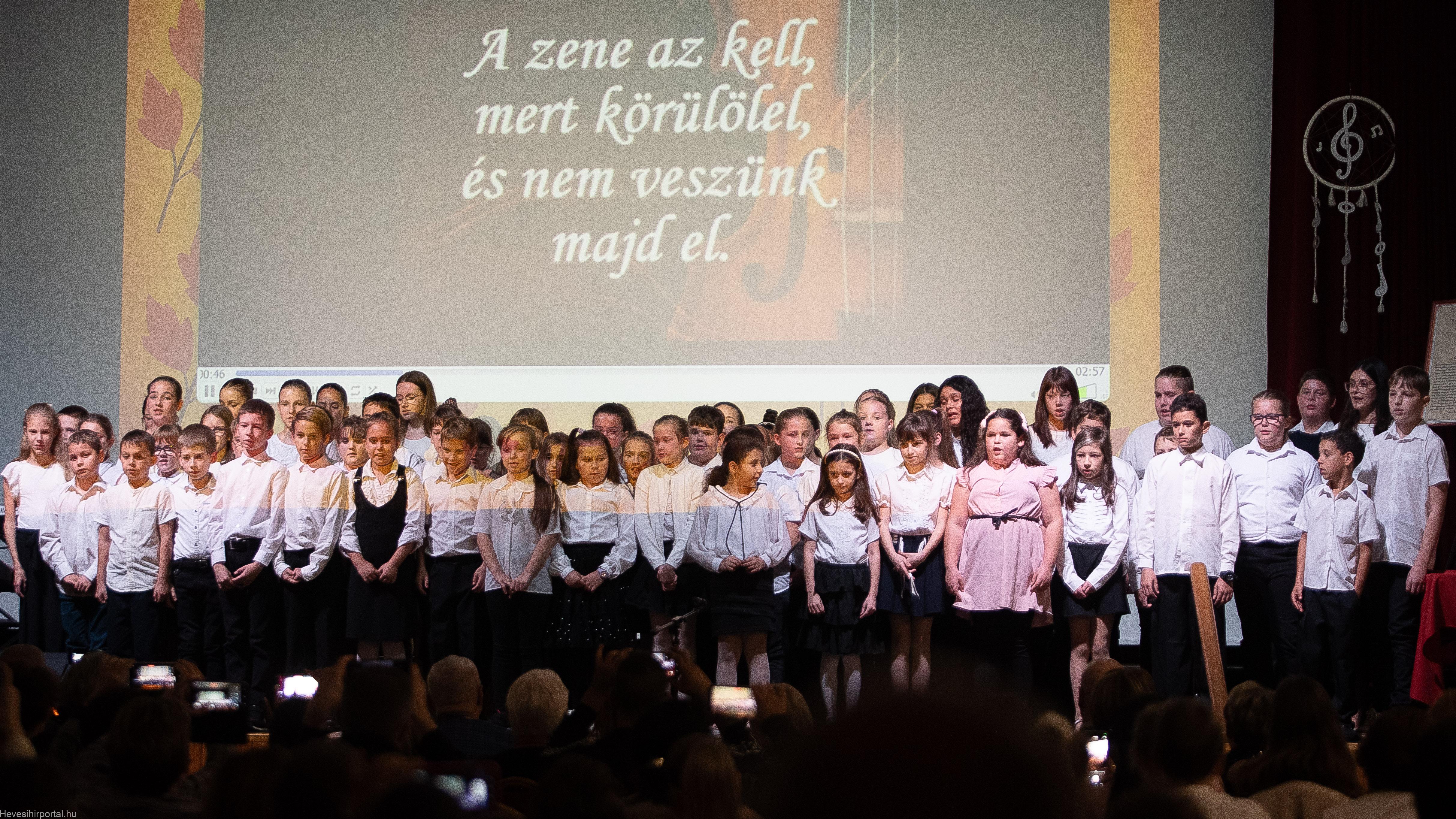 Gondoljunk csak bele: a zene mindenkit megszólít. Egy gyermekdal, egy népdal, egy szimfónia – mind képesek ugyanarra: megérinteni bennünket. Ha boldogok vagyunk, felerősíti az örömünket; ha szomorúak, vigaszt nyújt. A zene ott van a hétköznapjainkban és a legfontosabb élethelyzeteinkben is: születésnél, ünneplésnél, búcsúnál. Kísér bennünket, mint egy láthatatlan, de mindig hűséges barát” – hangzott el a köszöntőben, mely után klasszikus és modernebb dallamok is felcsendültek a zeneiskola pedagógusainak és diákjainak az előadásában.