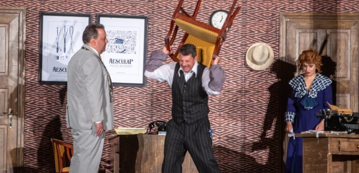 …és ahogy annak lennie kell, a kusza szerelem minden tisztes életet felborít. Elég egy szóváltás, egy lovagias helytállás és indul a lavina: pofon, becsületsértés, párbaj… – vagyis mindaz, ami egy bájos, békebeli szerelmi komédiához kell.