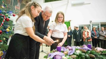 A katolikus iskola diákjainak műsora után Szabó Zsolt országgyűlési képviselő lobbantotta fel a hit lángját