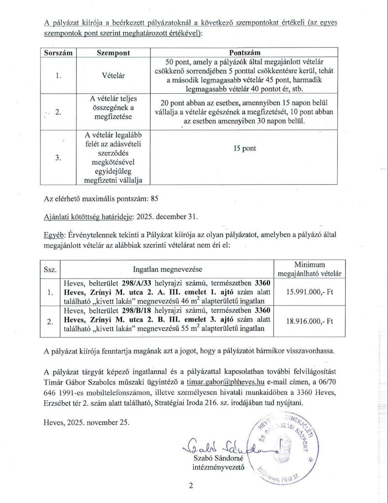 Két panellakást hirdet meg eladásra a Gyermekjóléti Központ. A Zrínyi utcai lakótelepen egy 46 m2-es és egy 55 m2-es lakásra várják a pályázatokat 2025. december 8-án 12 óráig az alábbi feltételekkel:
