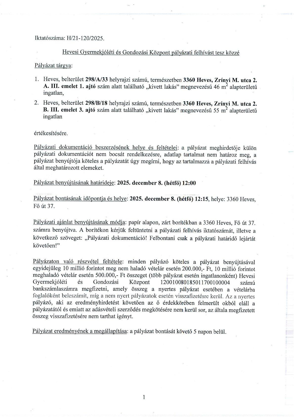 Két panellakást hirdet meg eladásra a Gyermekjóléti Központ. A Zrínyi utcai lakótelepen egy 46 m2-es és egy 55 m2-es lakásra várják a pályázatokat 2025. december 8-án 12 óráig az alábbi feltételekkel: