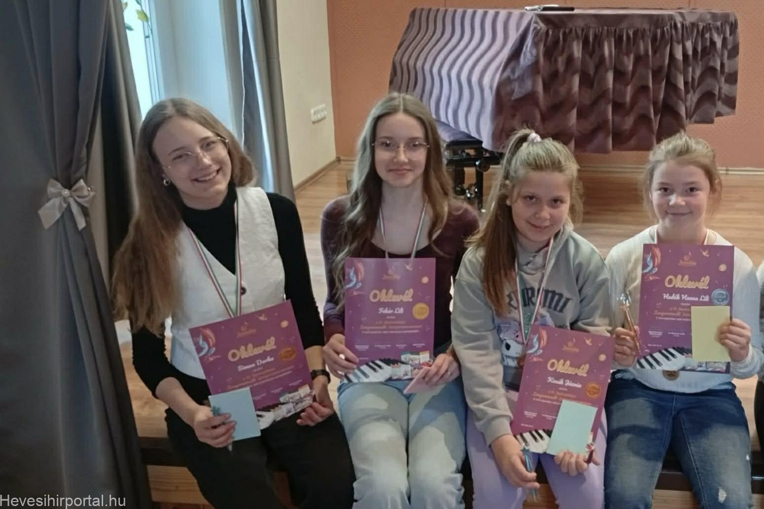Sikeresen szerepeltek a Zeneművészeti Tagintézmény növendékei a VI. “Zongoramesék” Nemzetközi Zongoraversenyen. Fehér Lili (8.a) arany, Hudák Hanna Lili (4.a) ezüst, Simon Dorka (7.b) és Kimák Jázmin (4.a) bronz minősítést érdemelt ki játékával. Felkészítő pedagógus: Tatai Judit