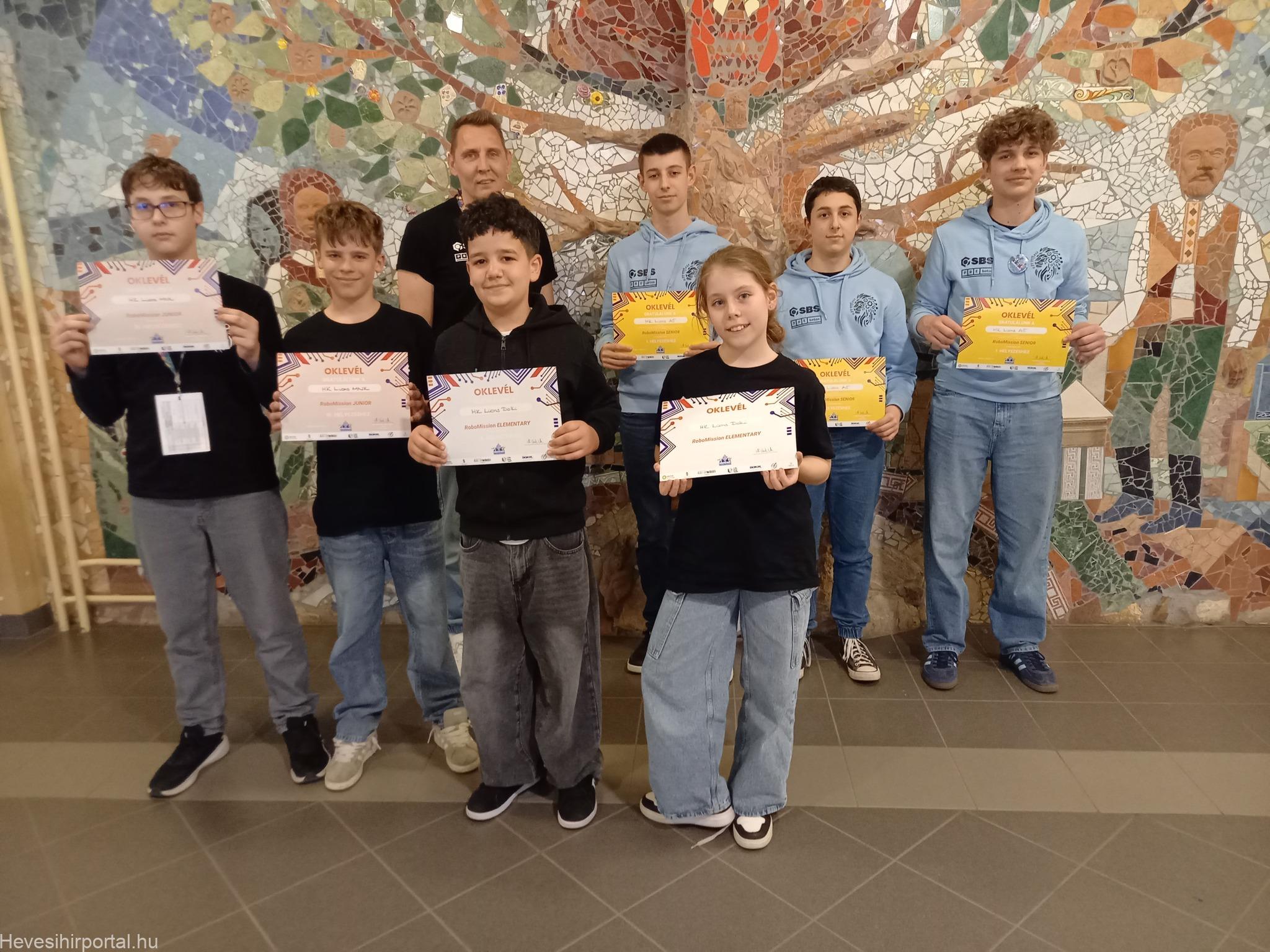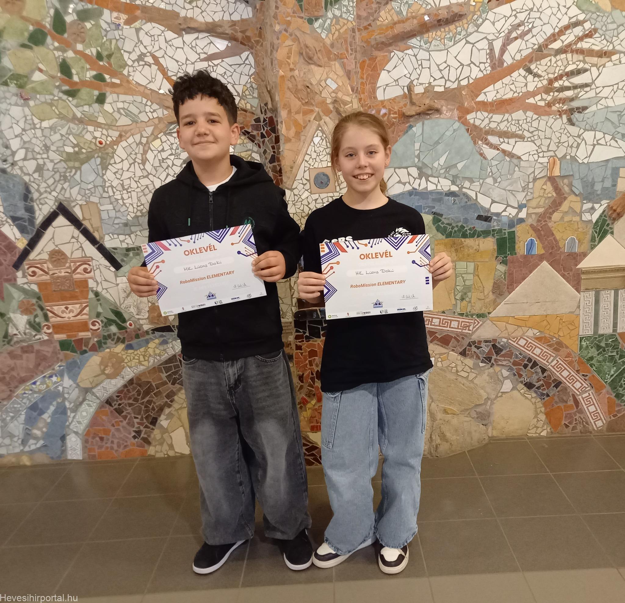A HK LIONS DOKI elnevezésű elementary csapatunk a 2. helyen végzett, kiemelkedően magas pontszámot teljesített, így nagyon jó eséllyel indulhat az országos elődöntőn. A csapat tagjai: Balassa Dorka (5.b), Imre Krisztián (5.a)