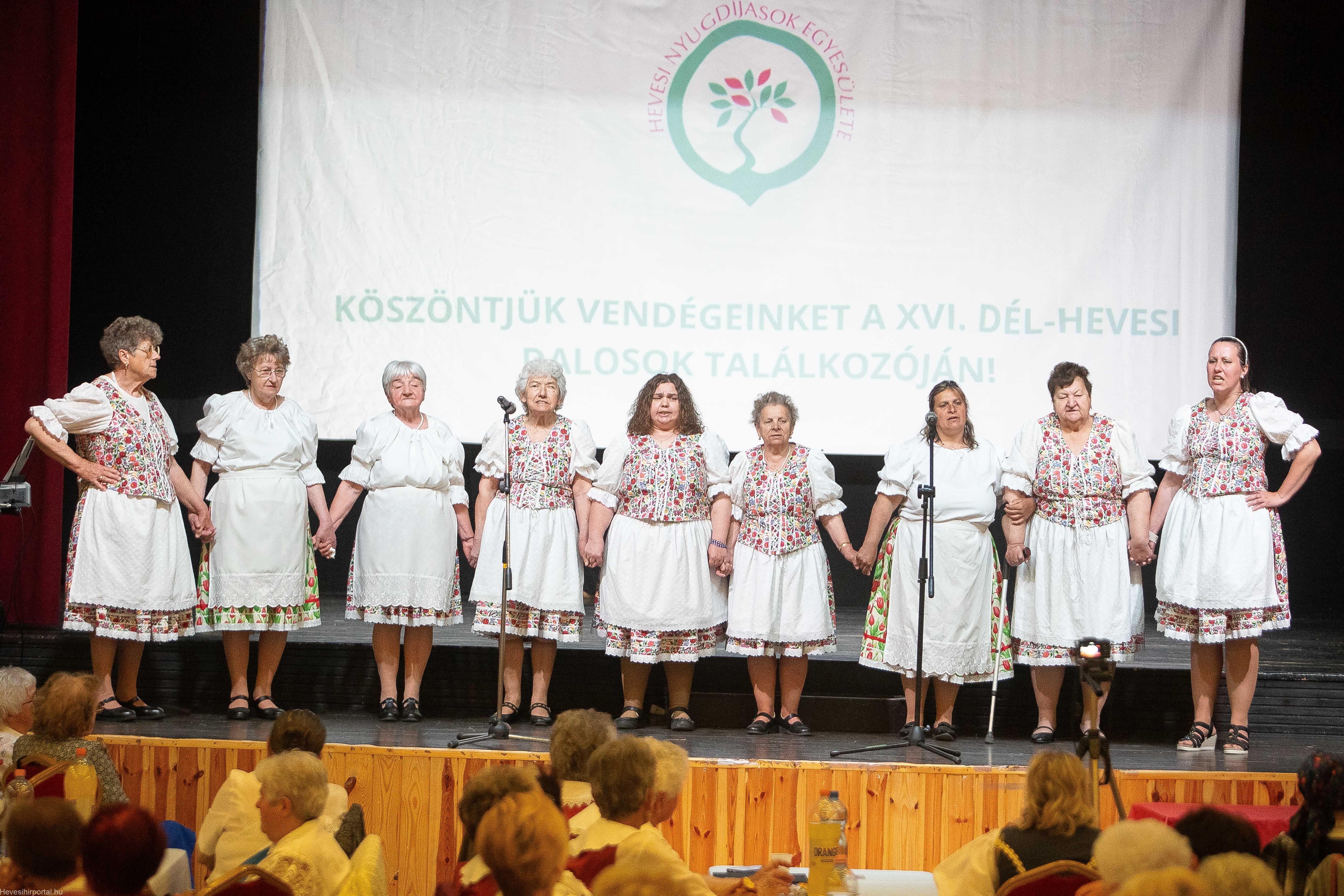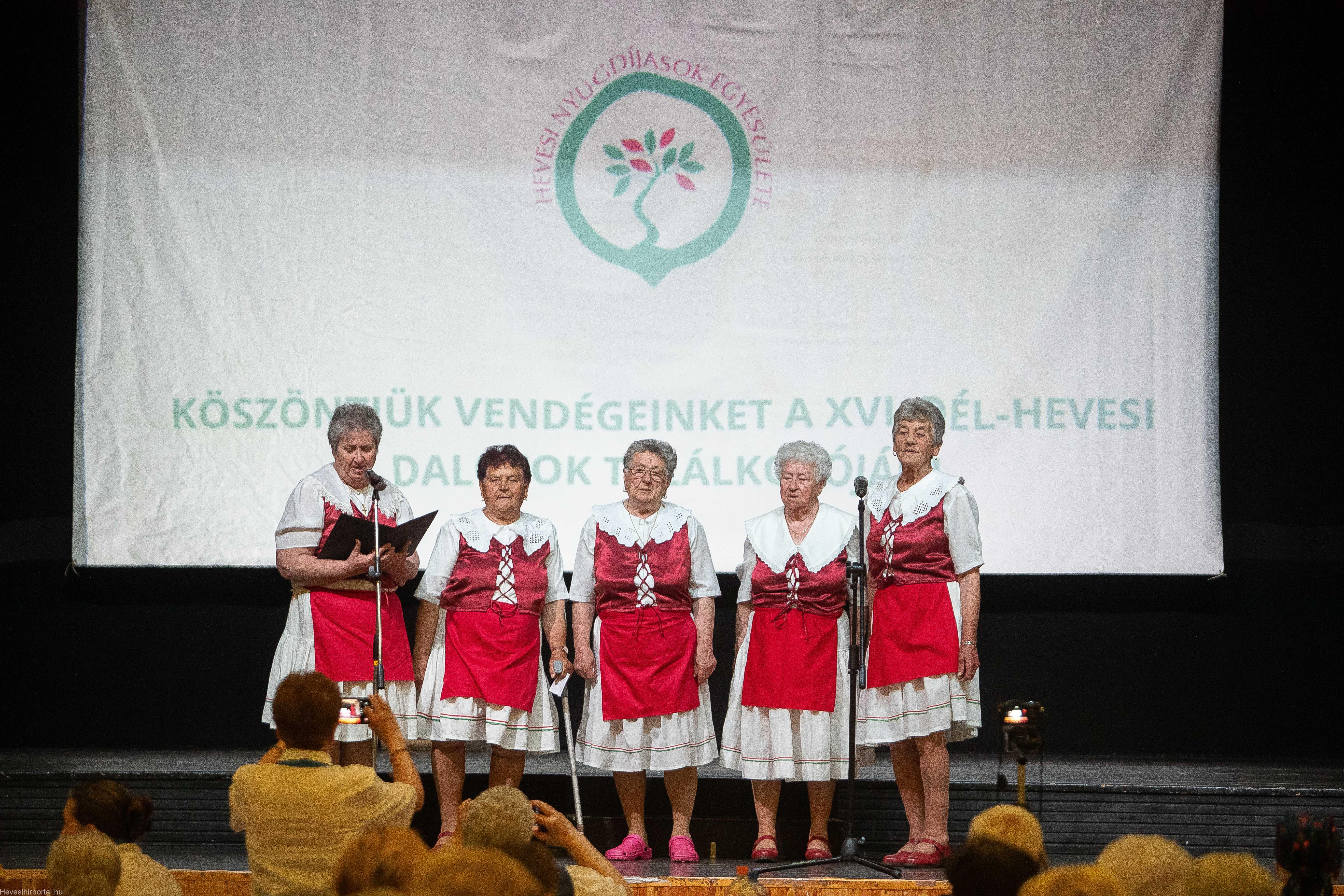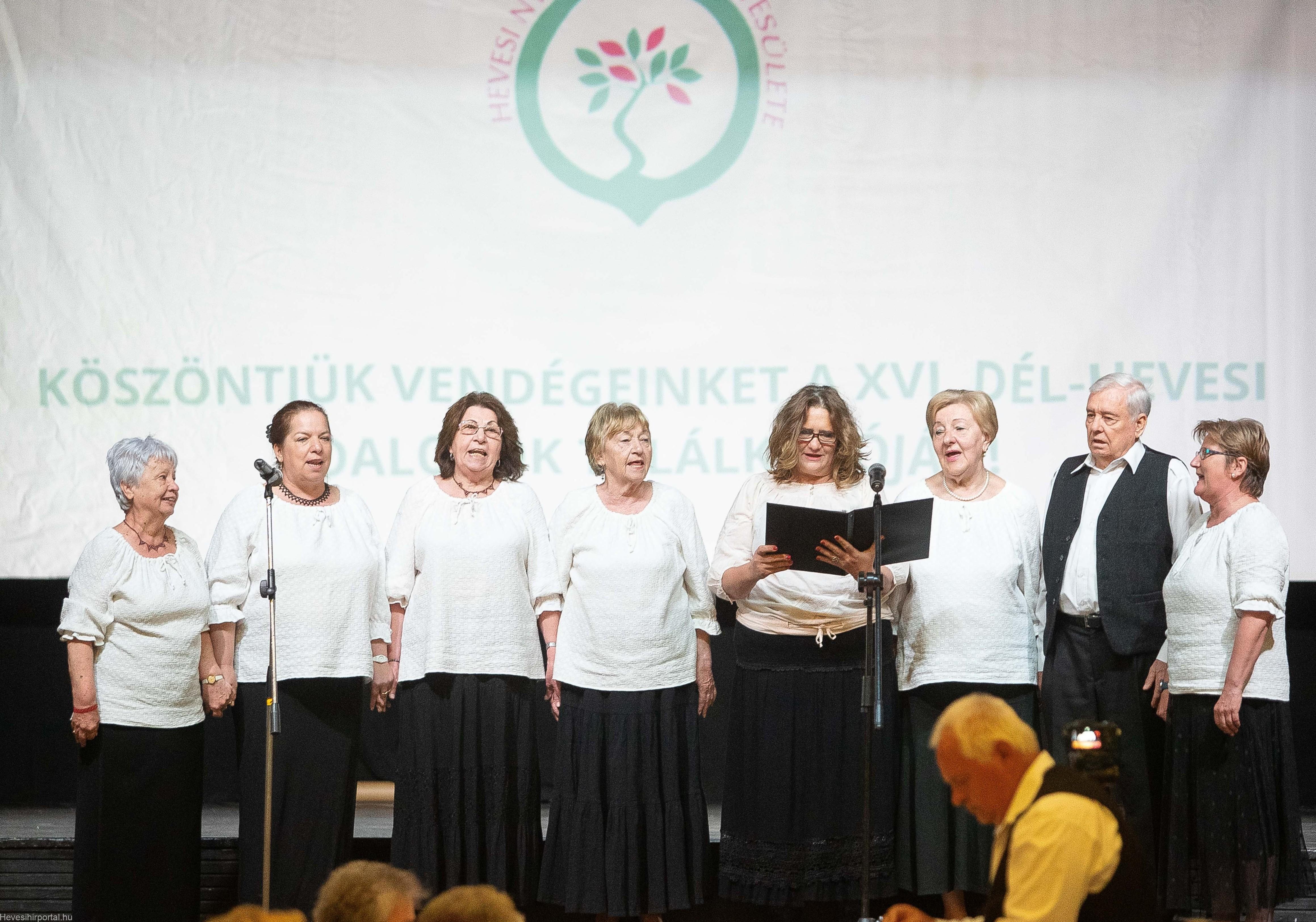 Az ünnepi beszédeket követően egymást váltották a színpadon a nótás kedvű fellépők. A házigazda Hevesi Nyugdíjasok Egyesületének „Őszikék” énekkara mellett műsort adott a kompolti Őszirózsa Asszonykórus, a kömlői Nefelejcs Népdalkör, Besenyőtelekről a Pacsirta Népdalkör, a nagyúti Andrássy Katinka Nyugdíjas Klub, az átányi Hagyományőrző Egyesület, a hevesi Csillagvirág Kórus, a kisnánai Mátragyöngye Hagyományőrző Népdalkör, a tenki Őszirózsa Nyugdíjas Klub, a maklári Búzavirág Népdalkör, a kápolnai Margaréták Hagyományőrző Egyesület Nótaköre, a kiskörei Hagyományőrző Nyugdíjas Egyesület, valamint Pélyről a Tiszavirág Népdalkör is.